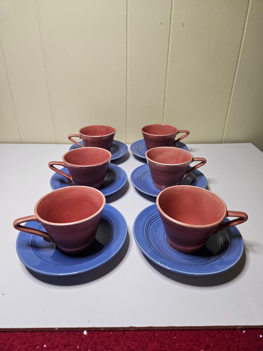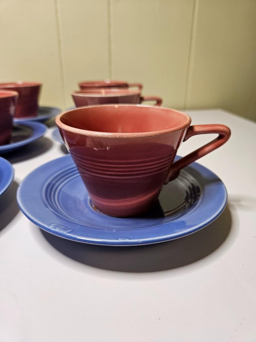 Vintage Set of 6 Harlequin Homer Laughlin Fiesta-Style Tea Cups and Saucers