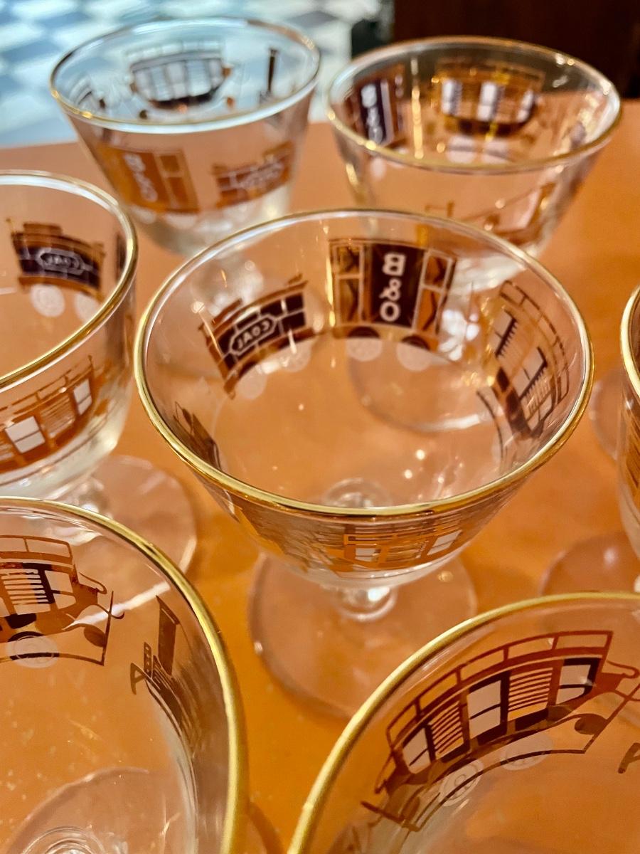 Vintage Set of 8 B&O Coal Gold Rim Glasses