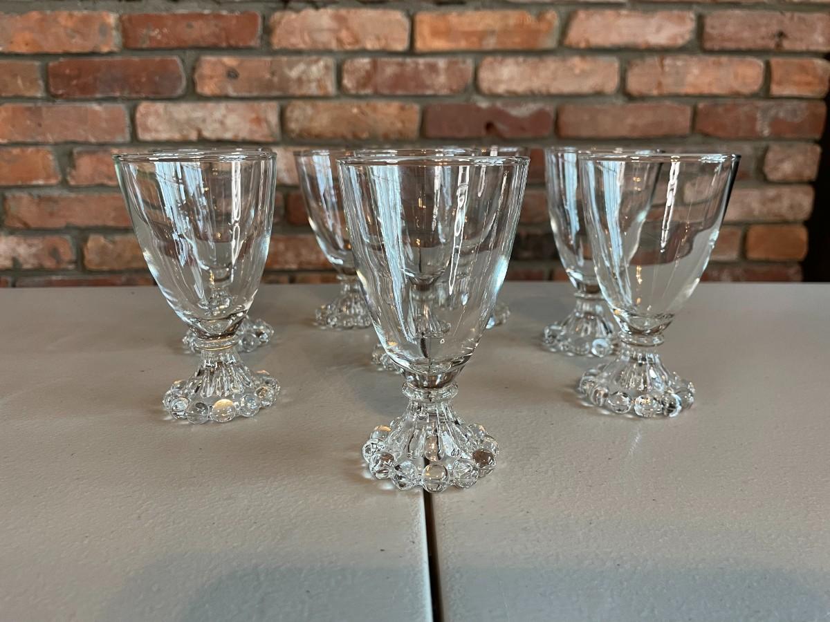 Vintage set of 8 footed cordial juice / water / cocktail glasses. 2 1/2W x 4 1/2H.