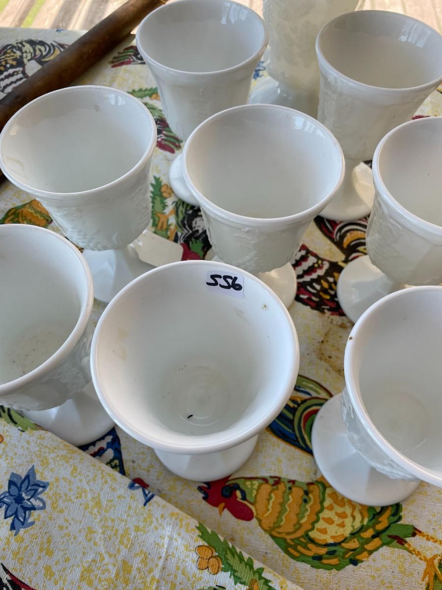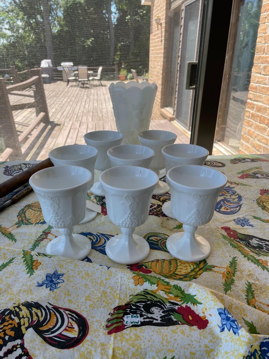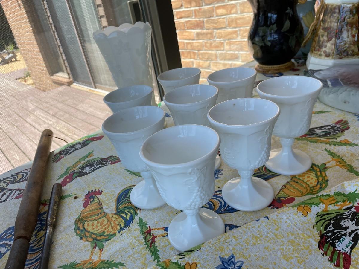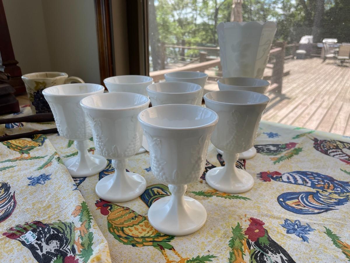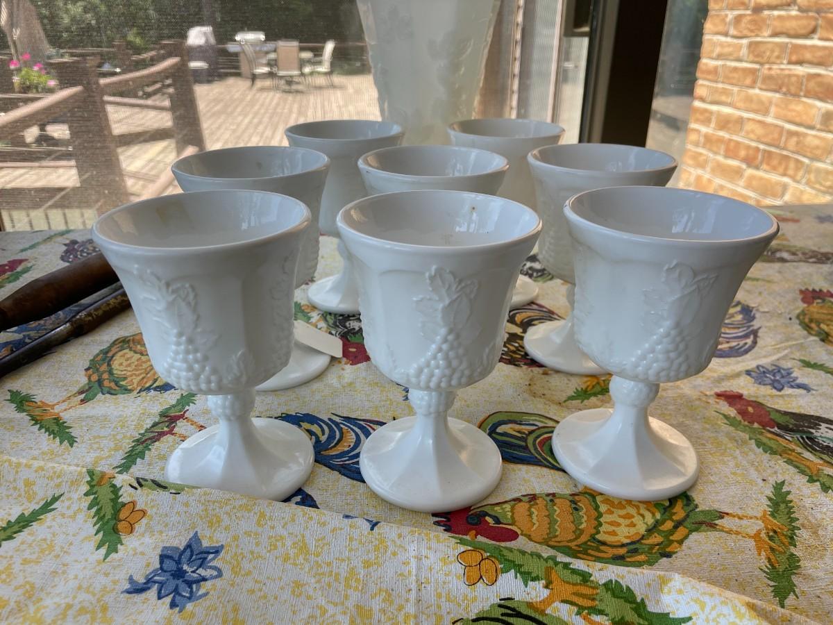 Vintage set of 8 Milk Glass Indiana Harvest Pedestal Footed Wine Goblets