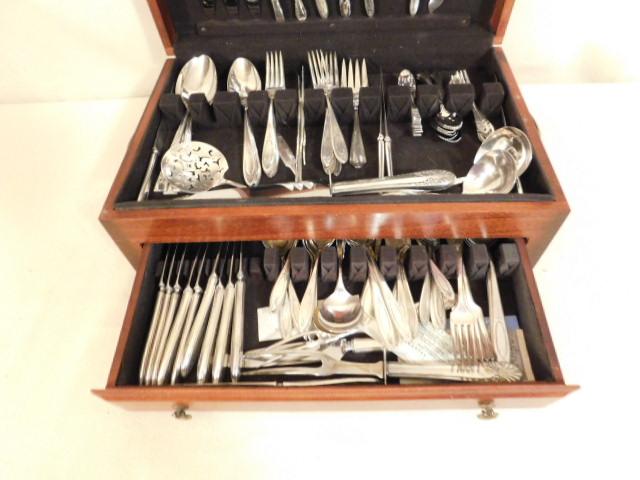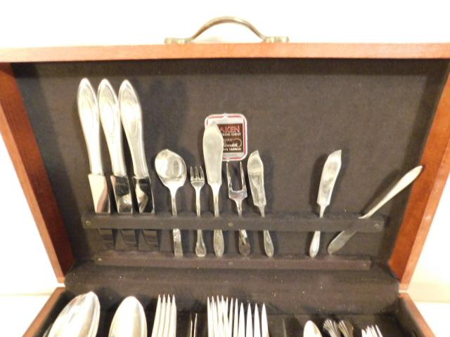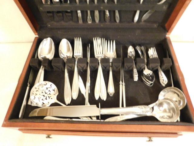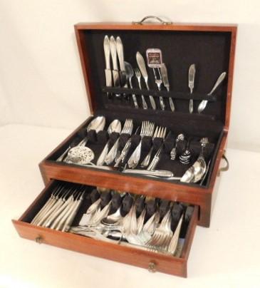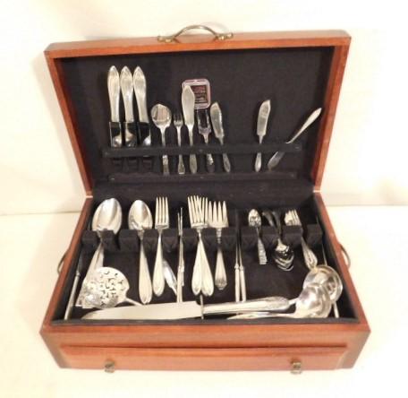 Vintage Set of Community Silver Plate Flatware in Solid Wood Nekan Box Approximately 85pcs