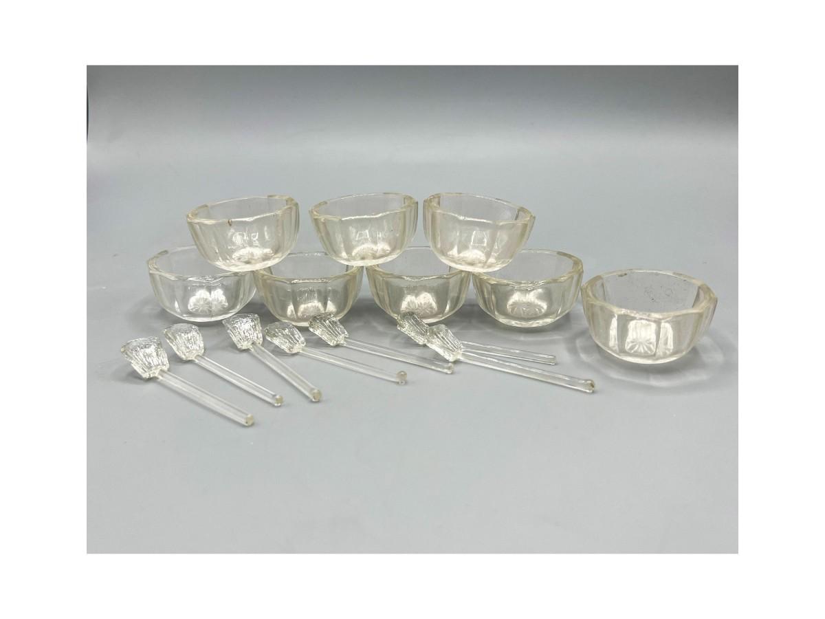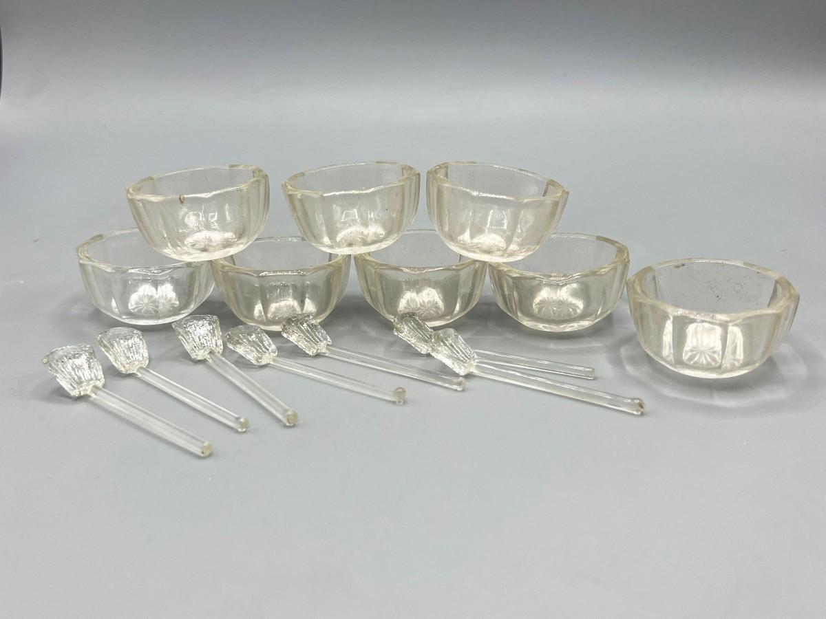 Vintage Set of Crystal Glass Salt Cellars with Matching Glass Spoons
