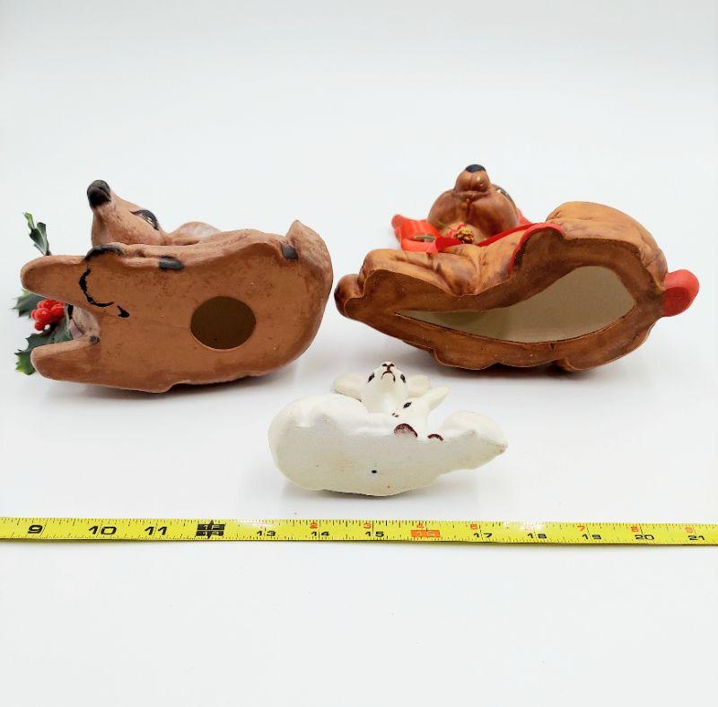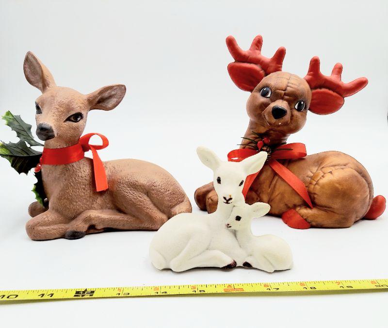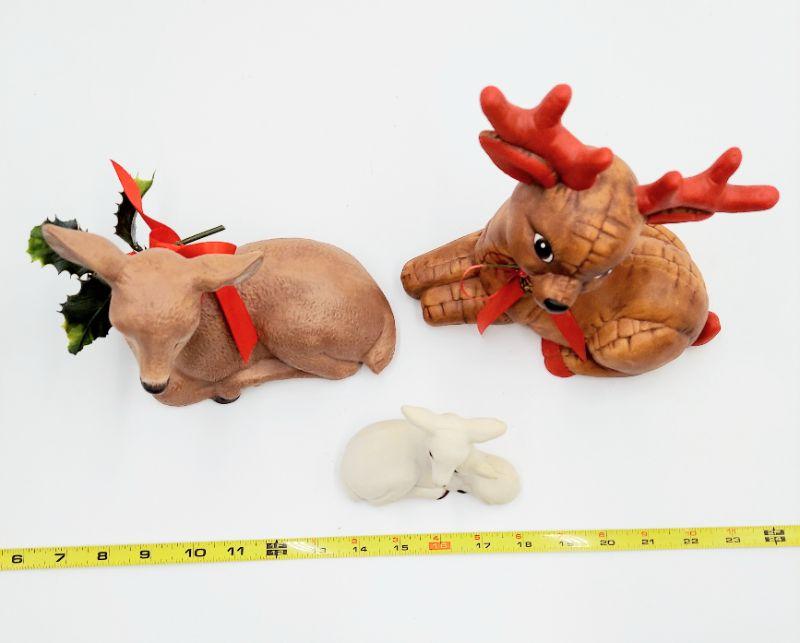 2 ceramic deer plus 1 "plastic" vintage one