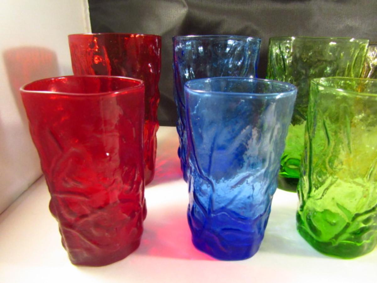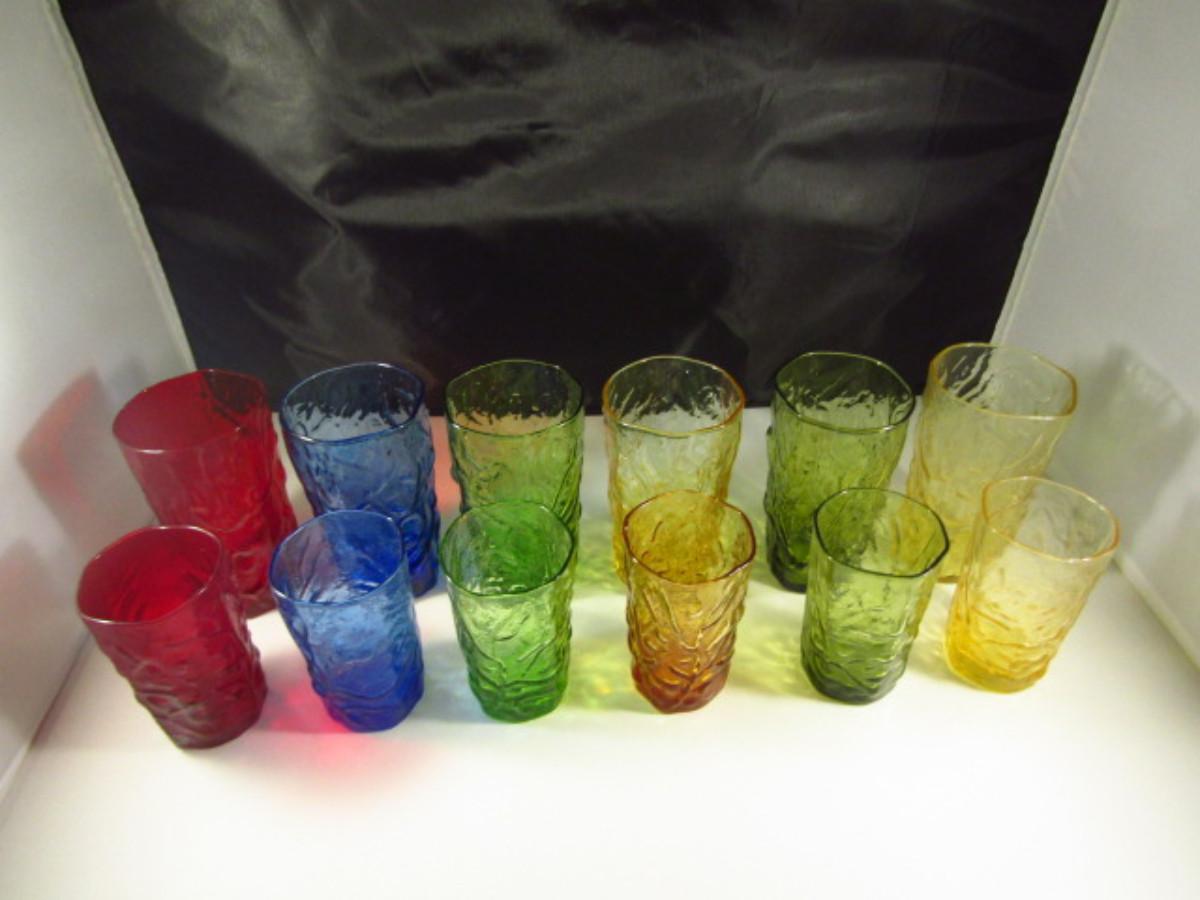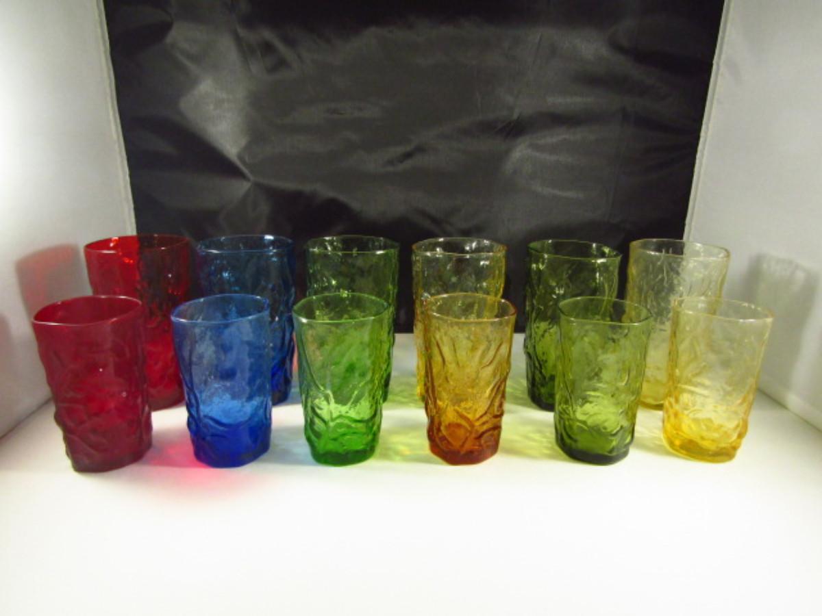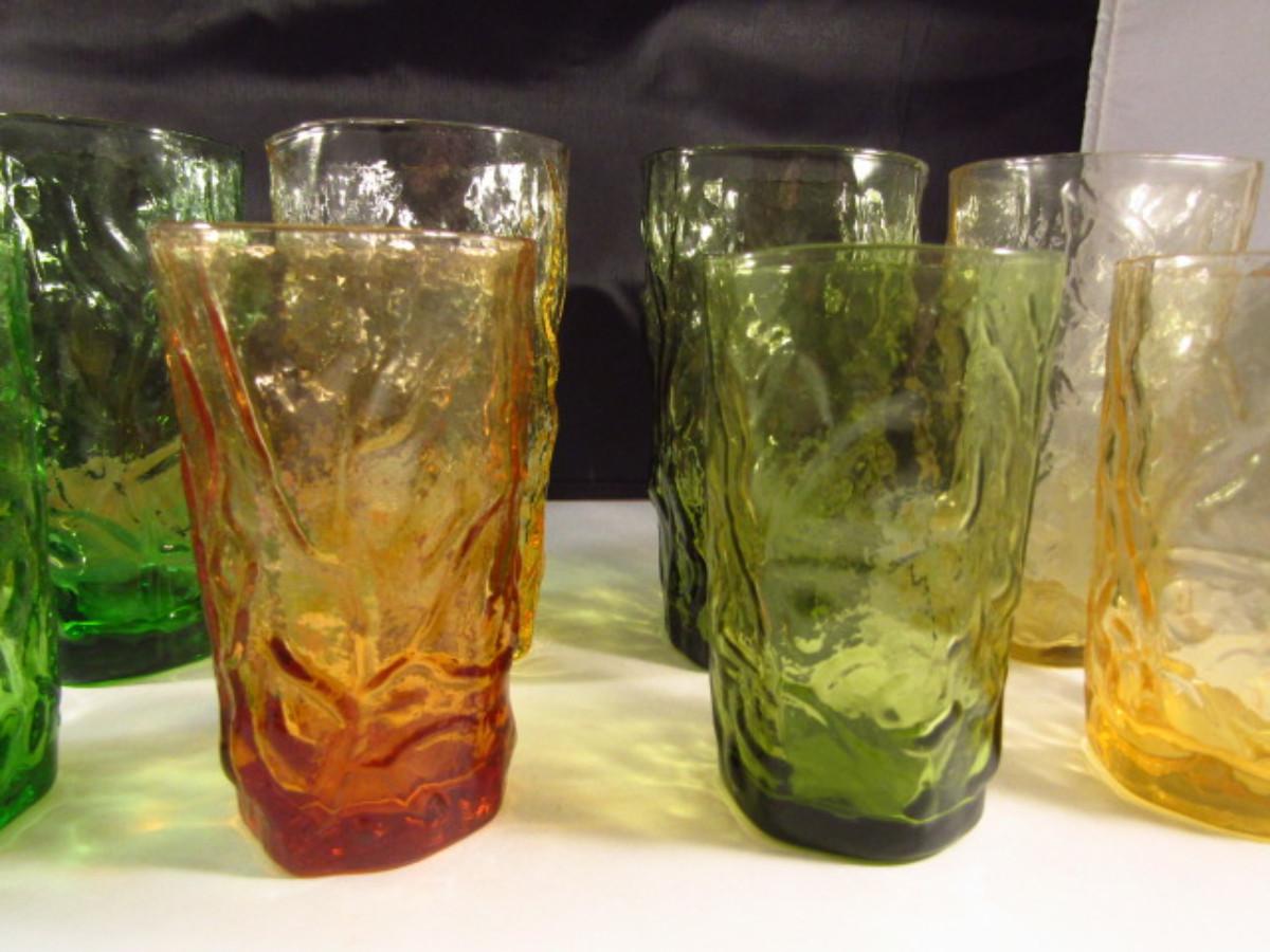 Vintage Set of Drinking Glasses. Six of each: Tall/Iced Tea Glasses and Juice Glasses. Possible maker is Seneca Glass.