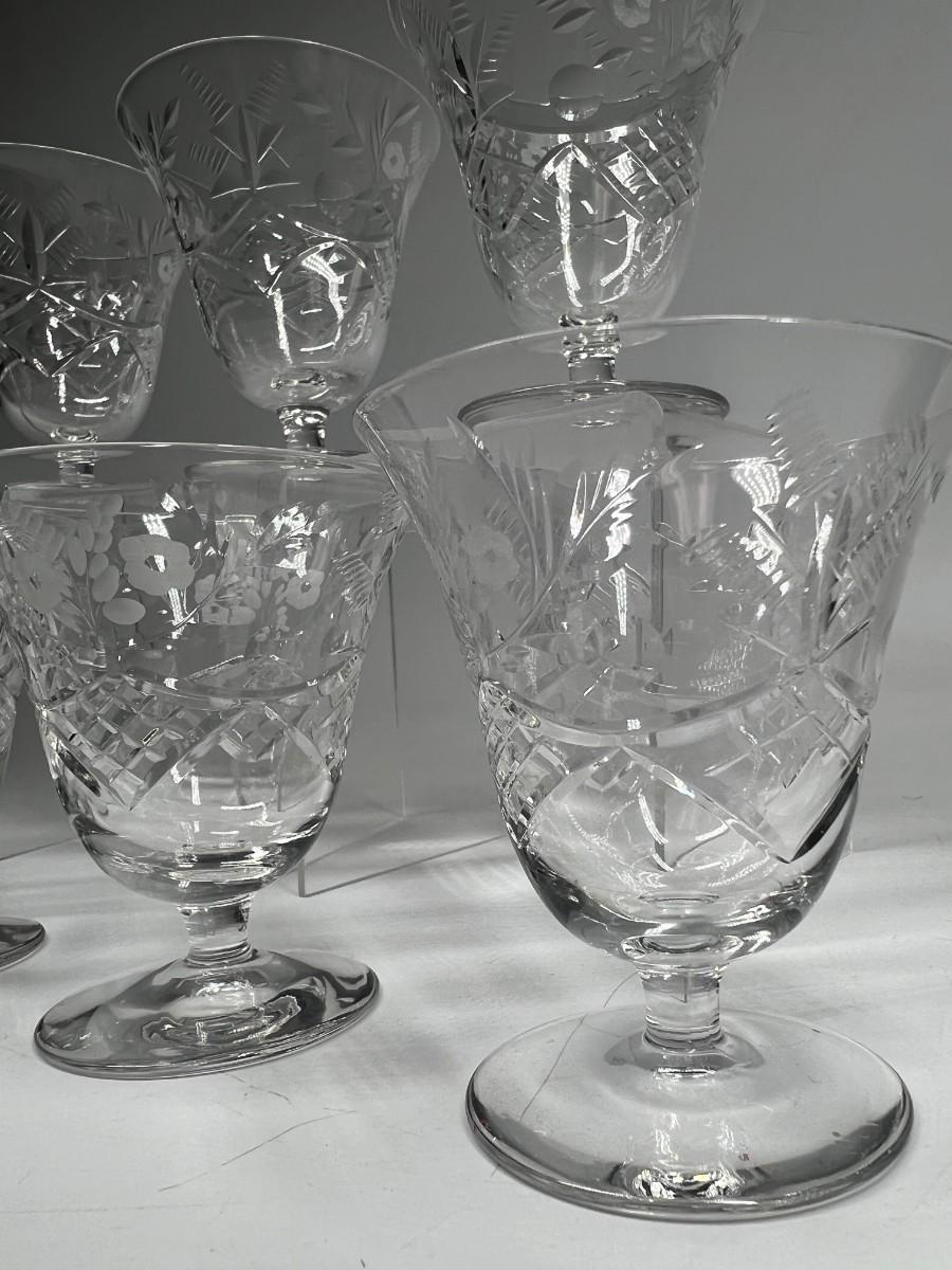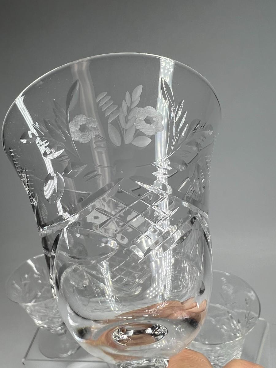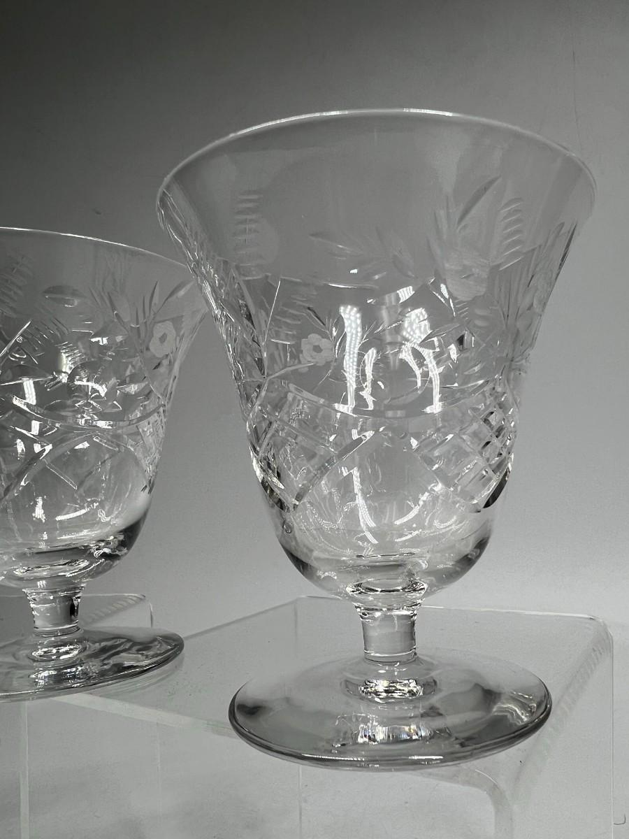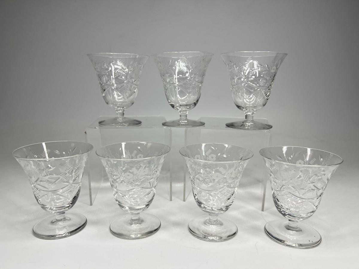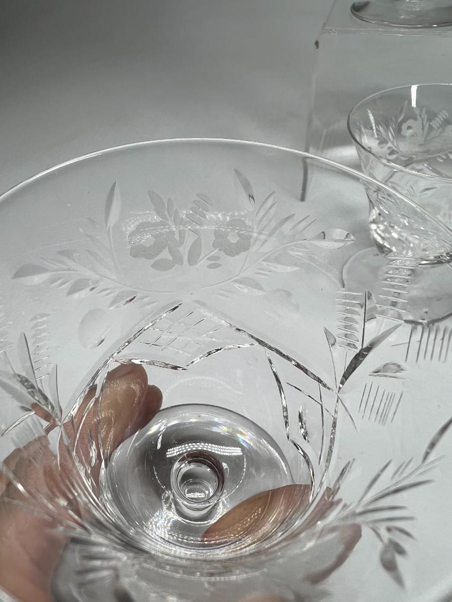 Vintage Set of Floral Etched Cut Crystal Cordial Cocktail Juice Dessert Glasses