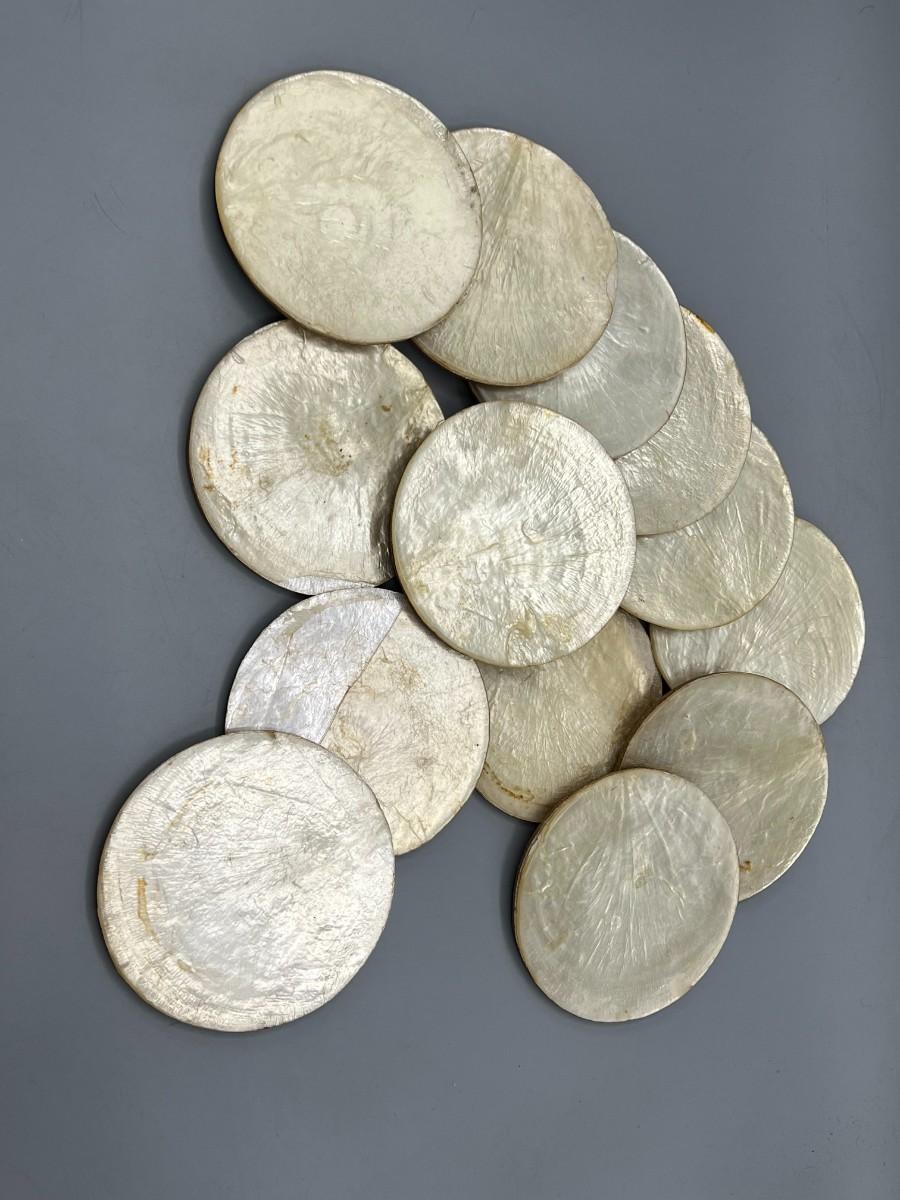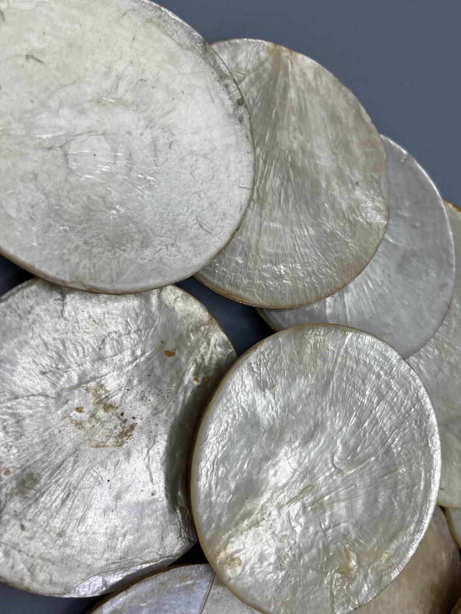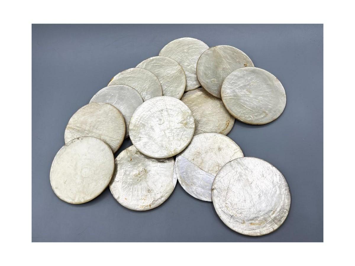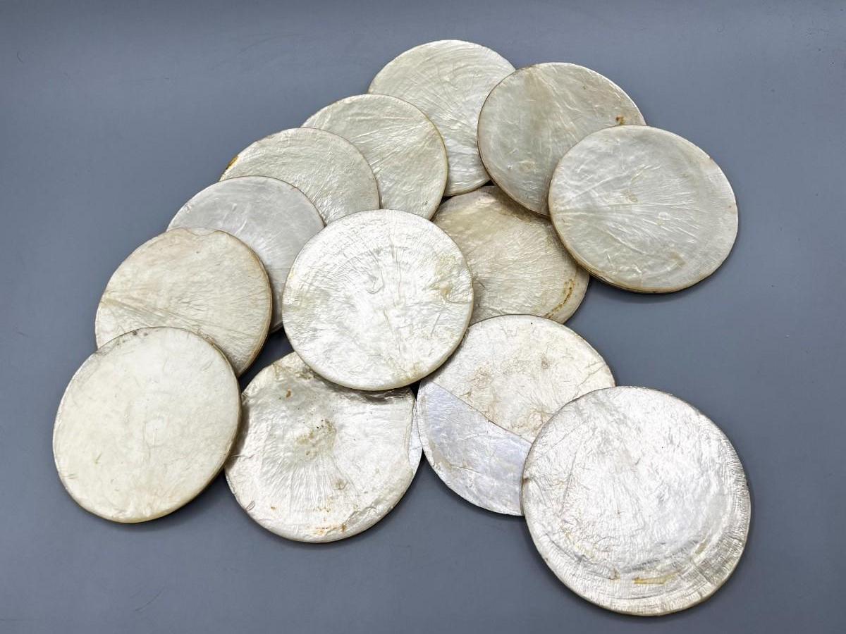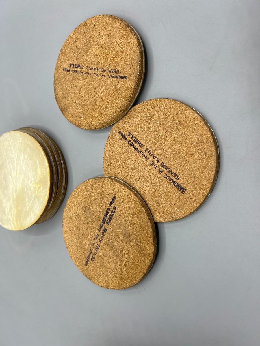 Vintage Set of Handmade Genuine Capiz Seashell Drink Coasters