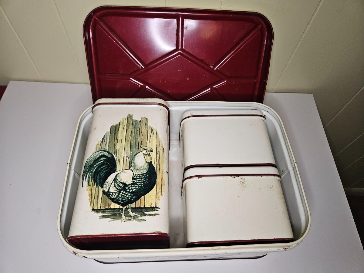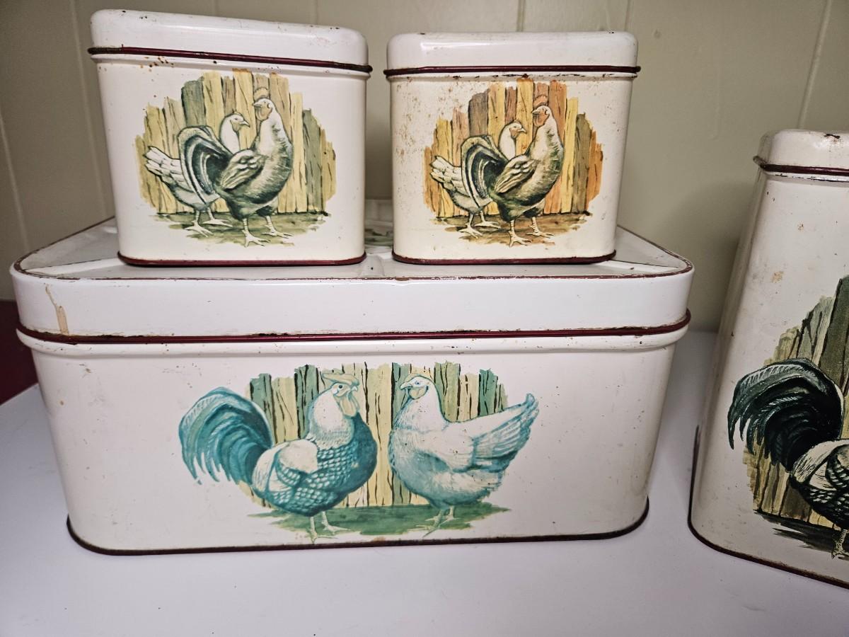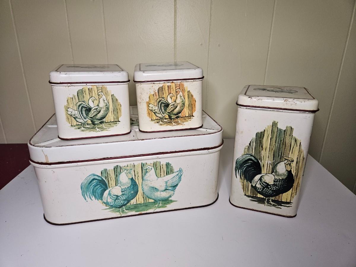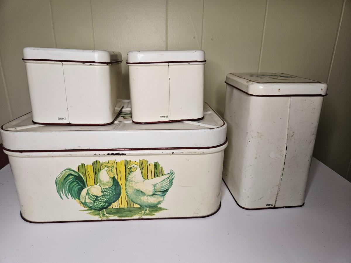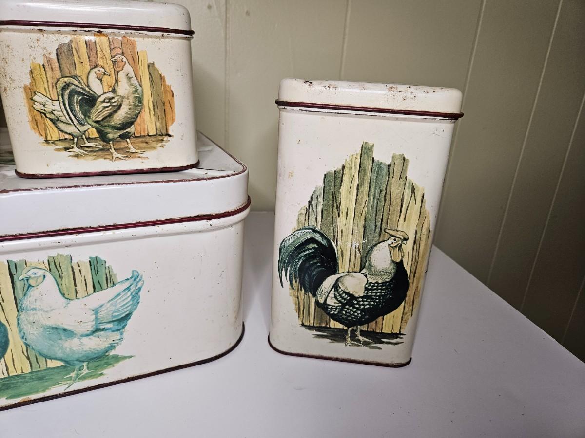 Vintage Set of Metal Chicken Storage Containers