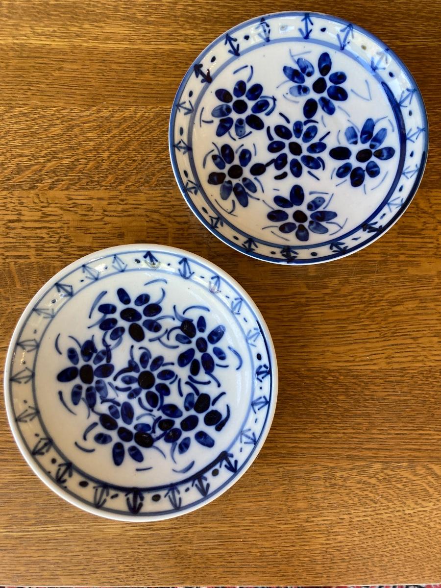 Vintage Set of two Mount Saio Brazil porcelain bowls 9” diameter. Cobalt blue floral motifs over white underglaze.