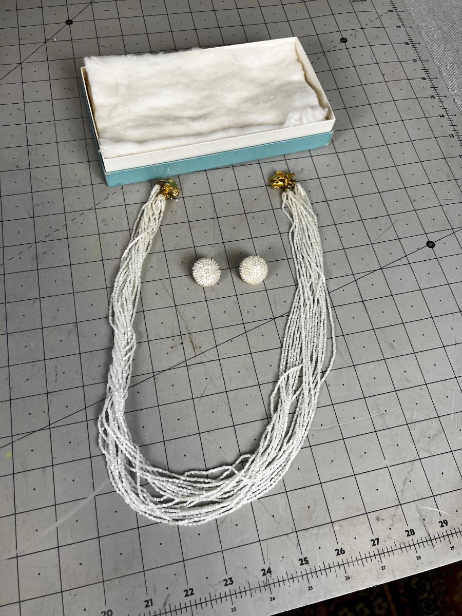 Vintage Set of White Tiny Beaded Choker & set of Clip on Earings