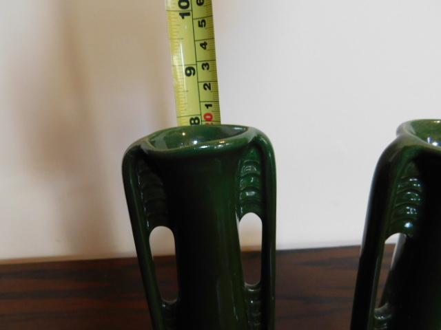 Vintage Set Shawnee Pottery Art Deco Green MCM Bud Vases 8"