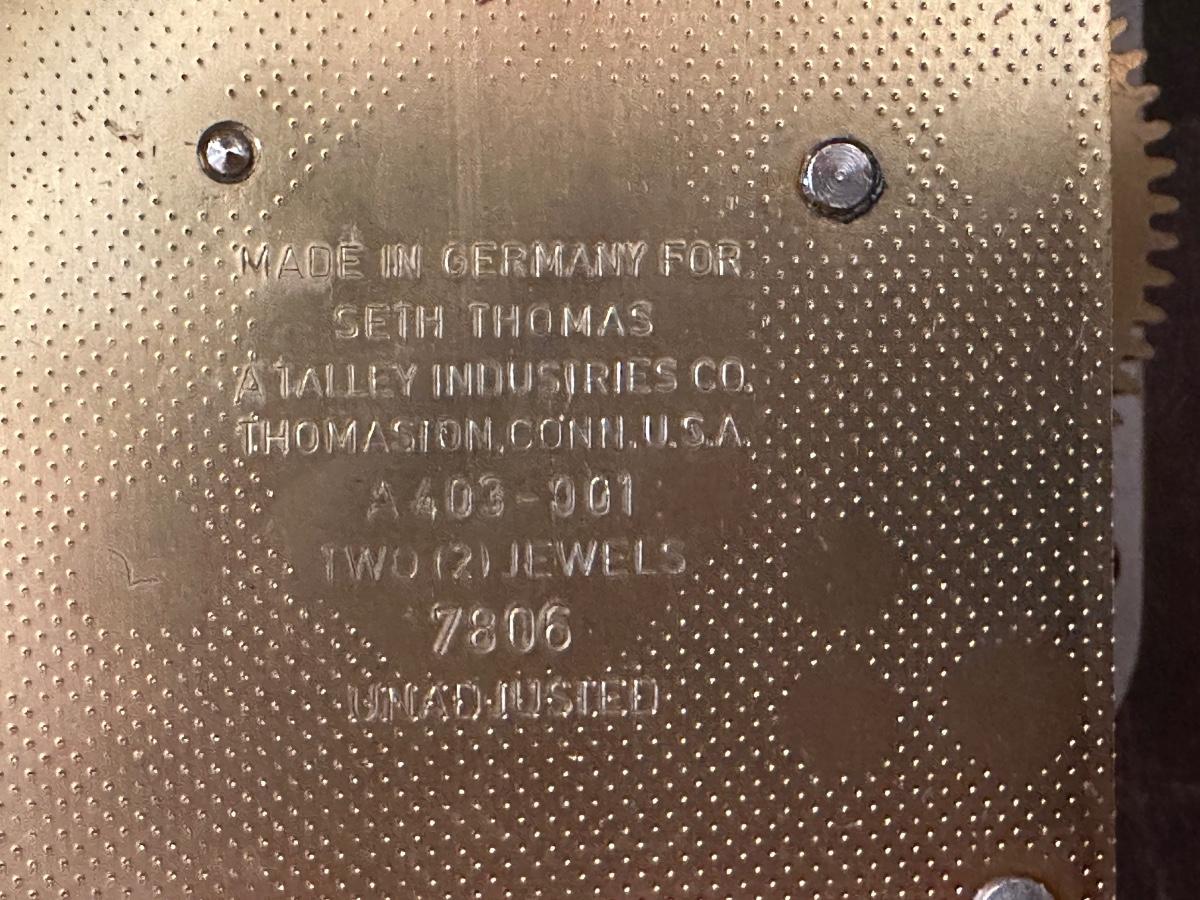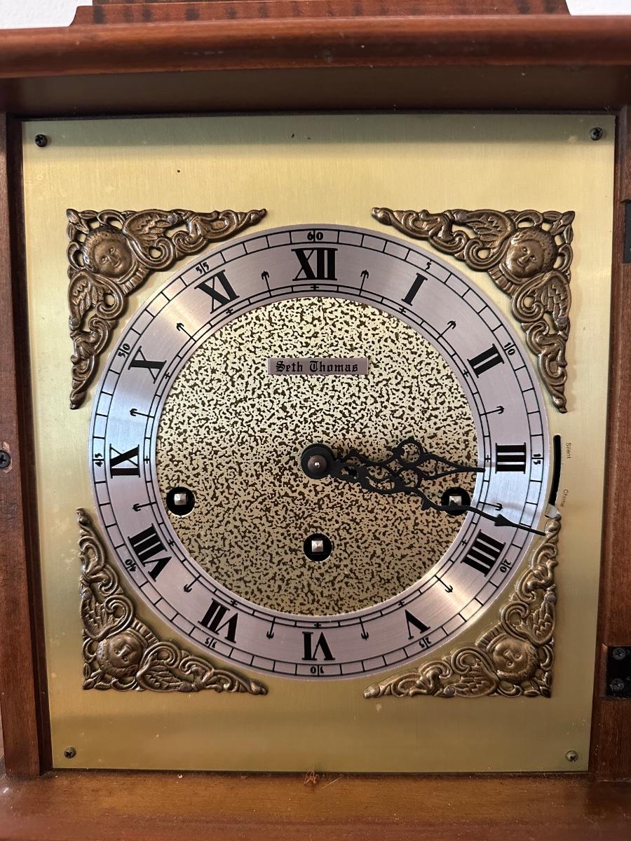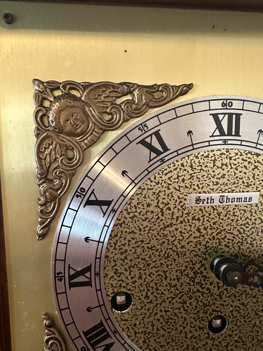 Vintage Seth Thomas Mantel Clock – With Key. Chimes when wound but not currently running.