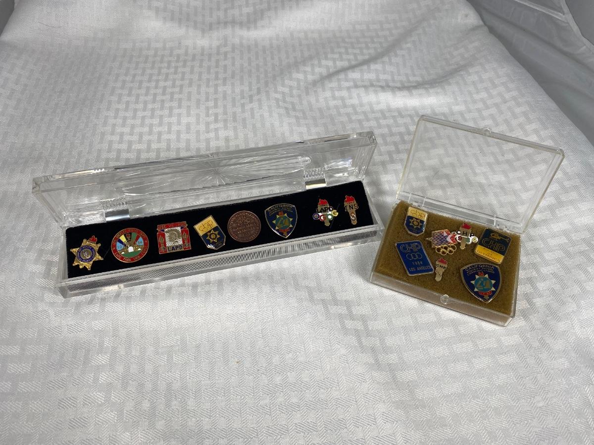 Vintage Sets of Enamel Pins 1984 Olympics Los Angeles LAPD CHP LACS