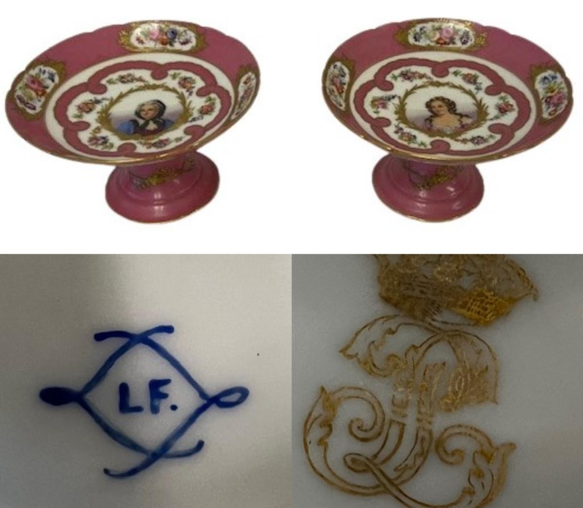 Artist signed. Two pieces. Porcelain construction. No obvious chips or cracks. Measurement: 8.5"W x 5"H (each). [EC]