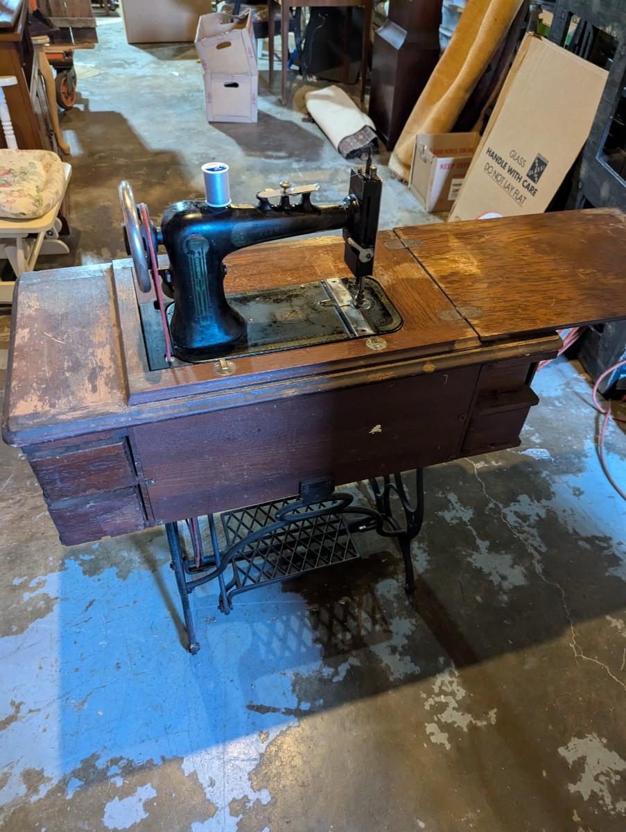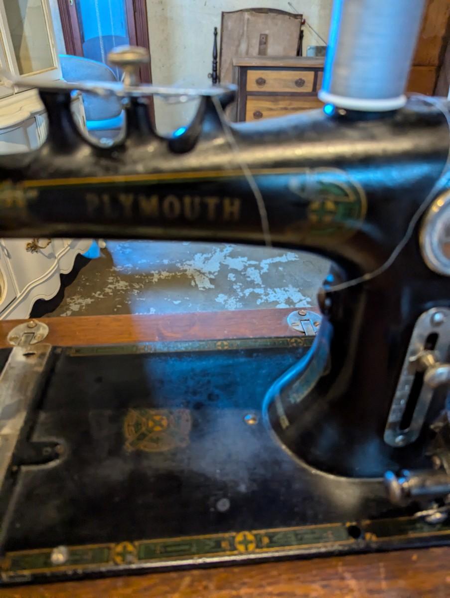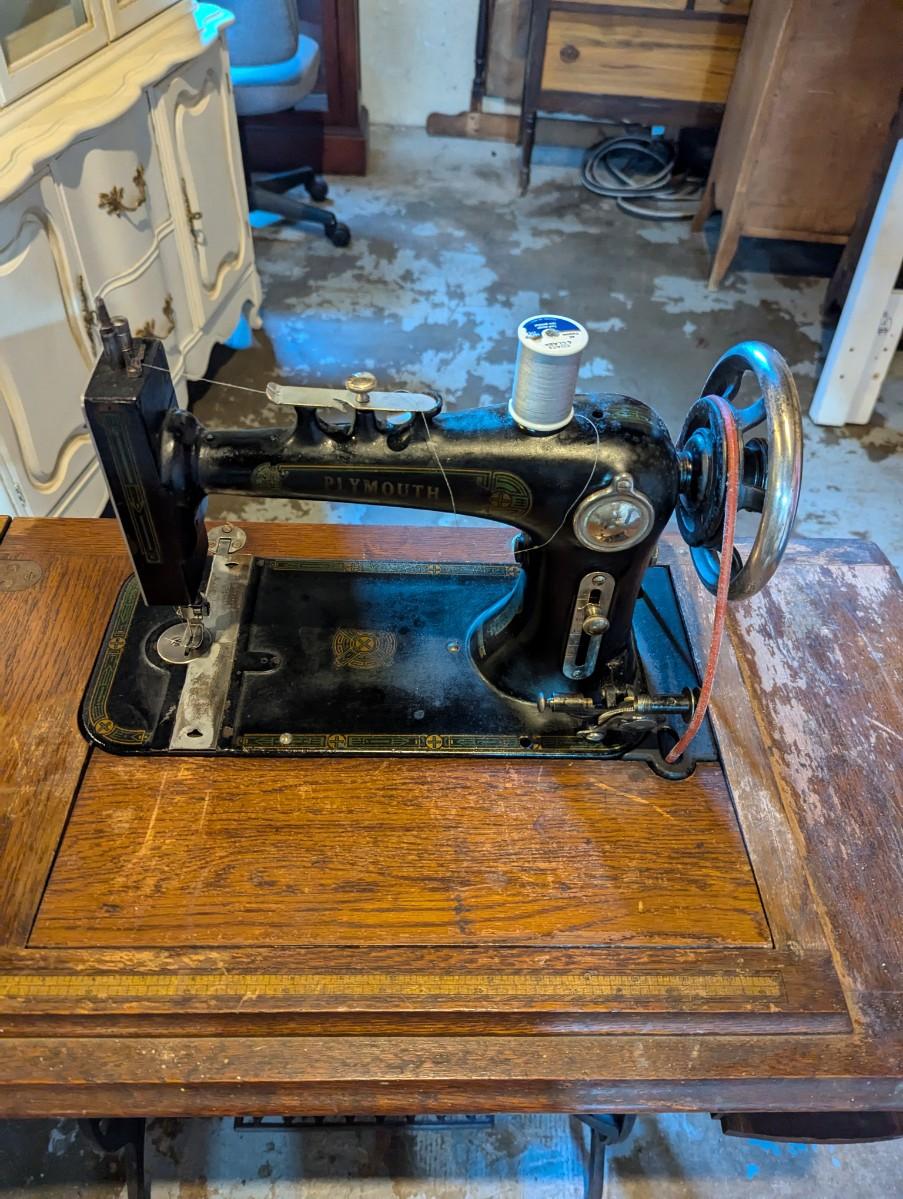Vintage Sewing Cabinet With Plymouth Machine On Wheels