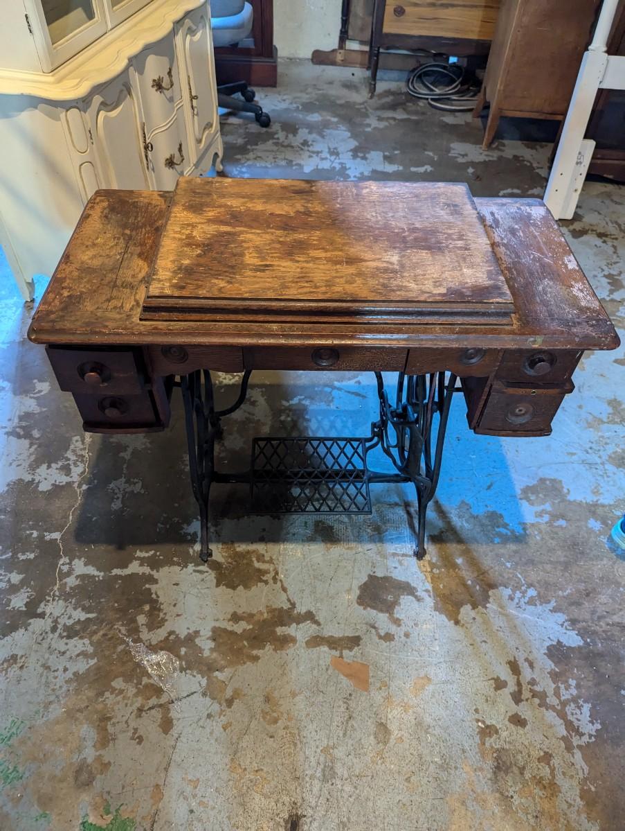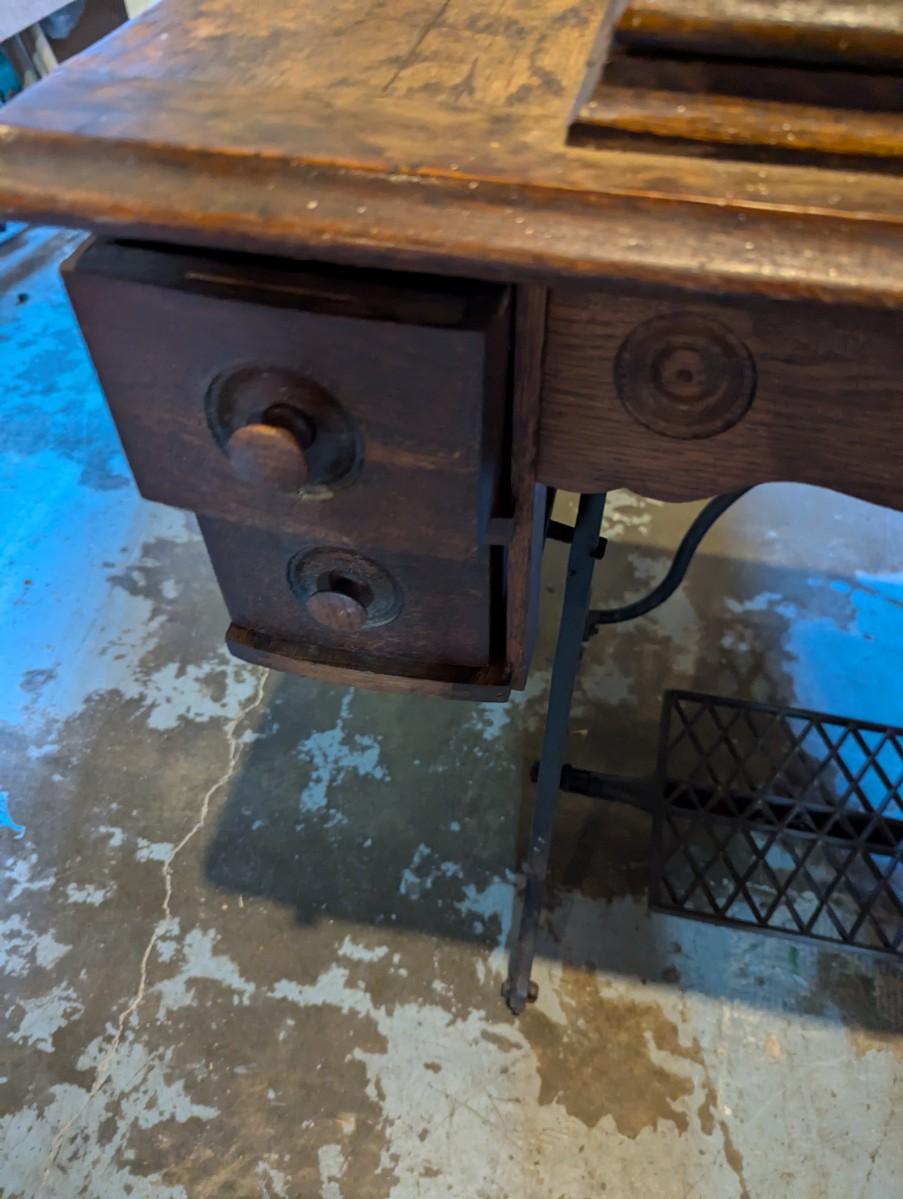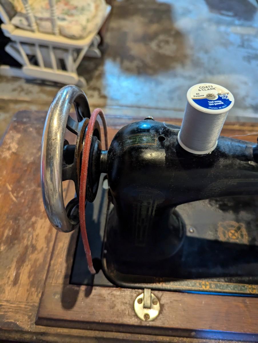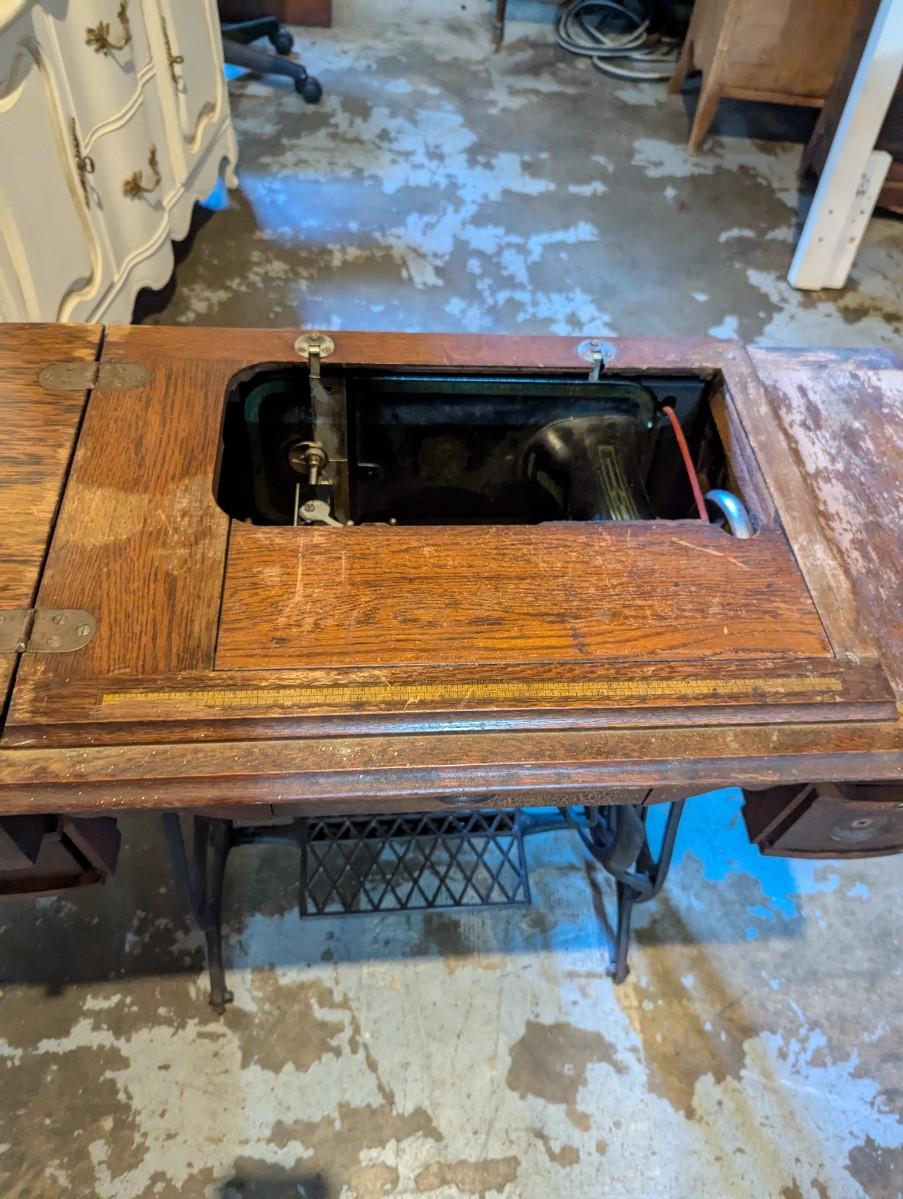 Vintage Sewing Cabinet With Plymouth Machine On Wheels