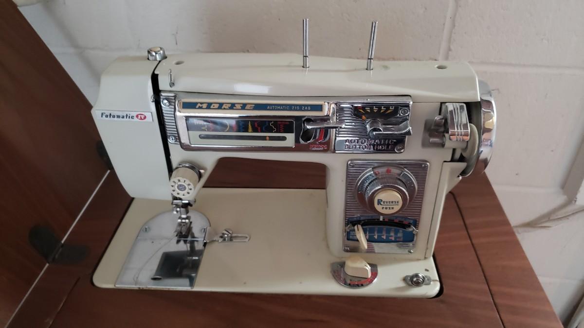 Vintage sewing machine in cabinet