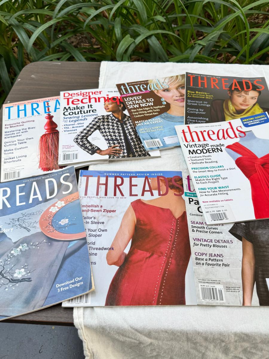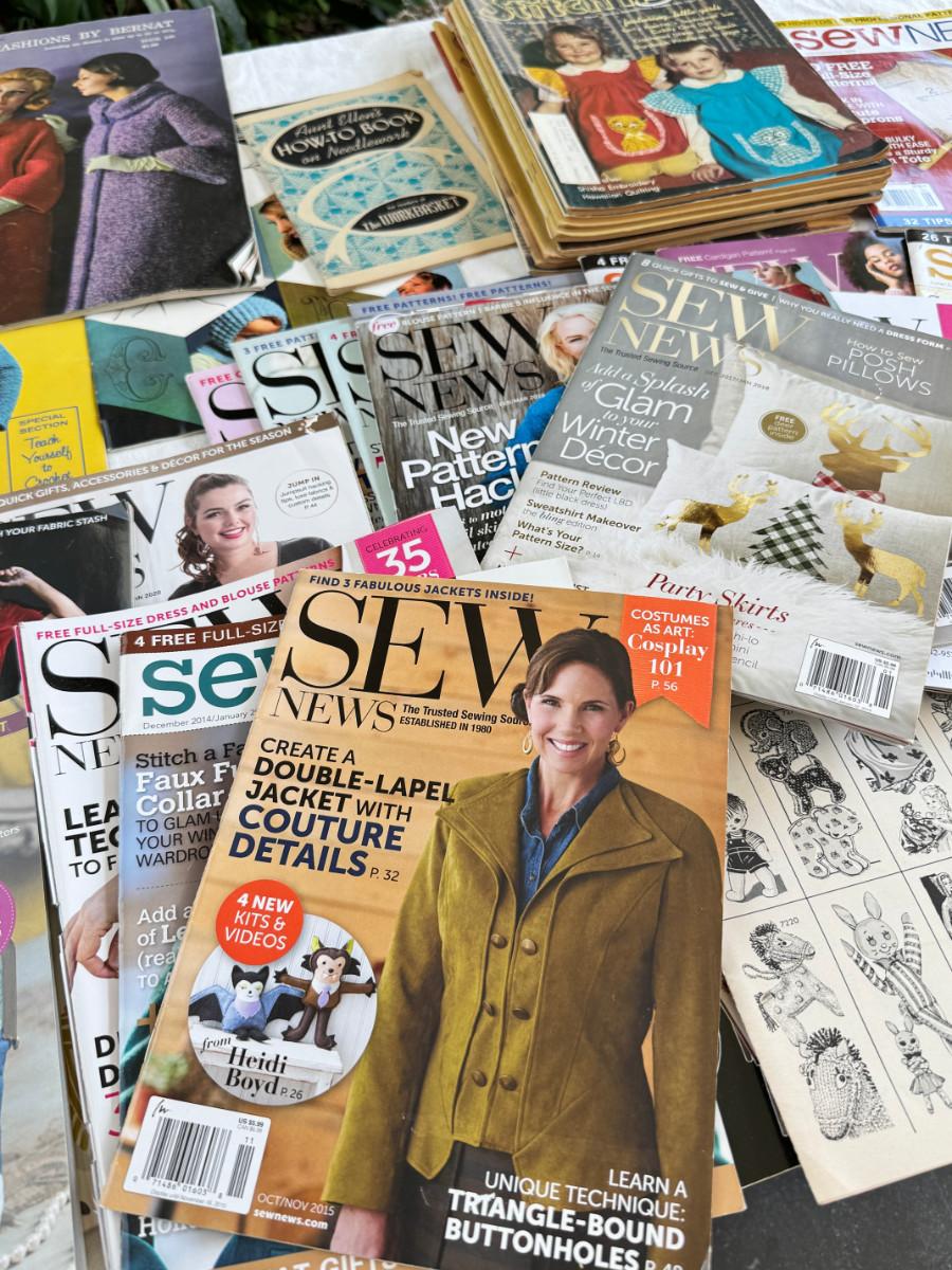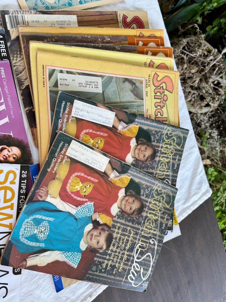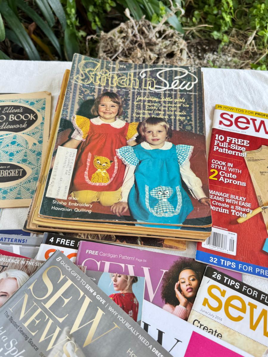 Sew News, Threads, Stitch excellent sewing magazines with intact patterns. Trident water meter caps made into jewelry boxes, Craft books