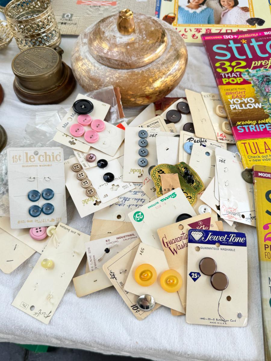 Vintage sewing magazines, Buttons, Vintage NY water main caps boxes