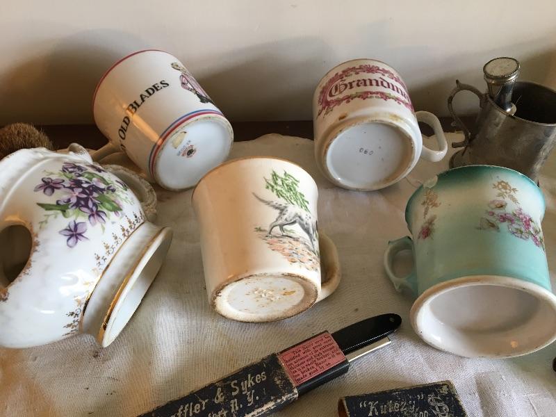 Vintage Shaving Collectibles Lot with Mugs, Razors and more