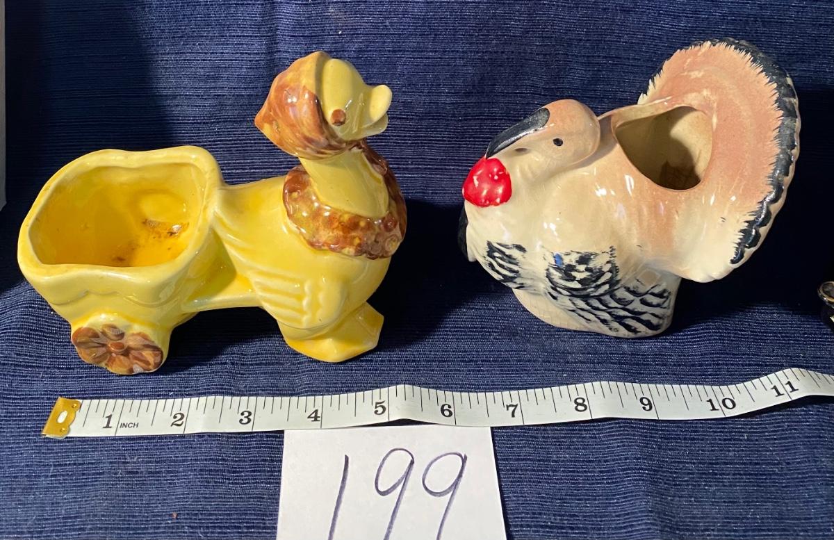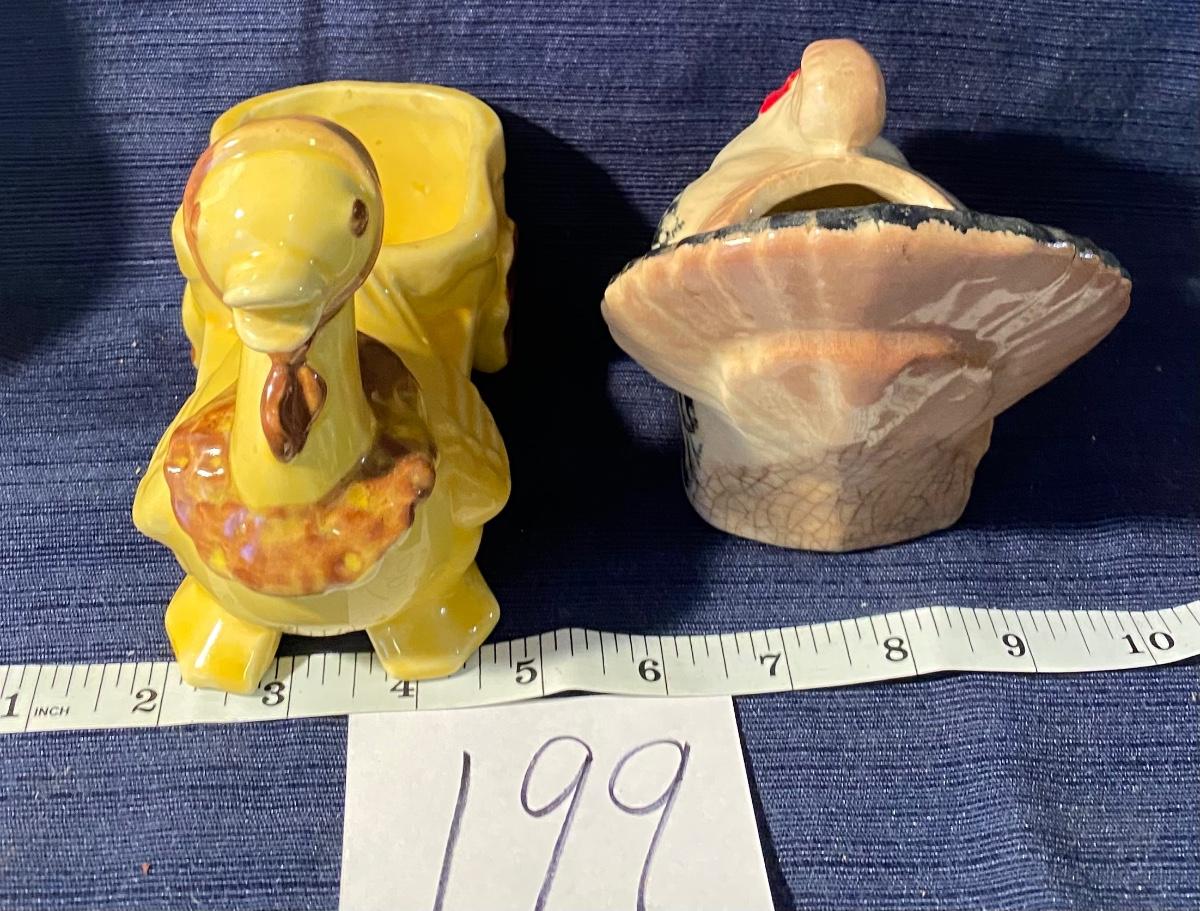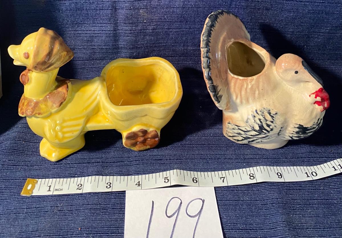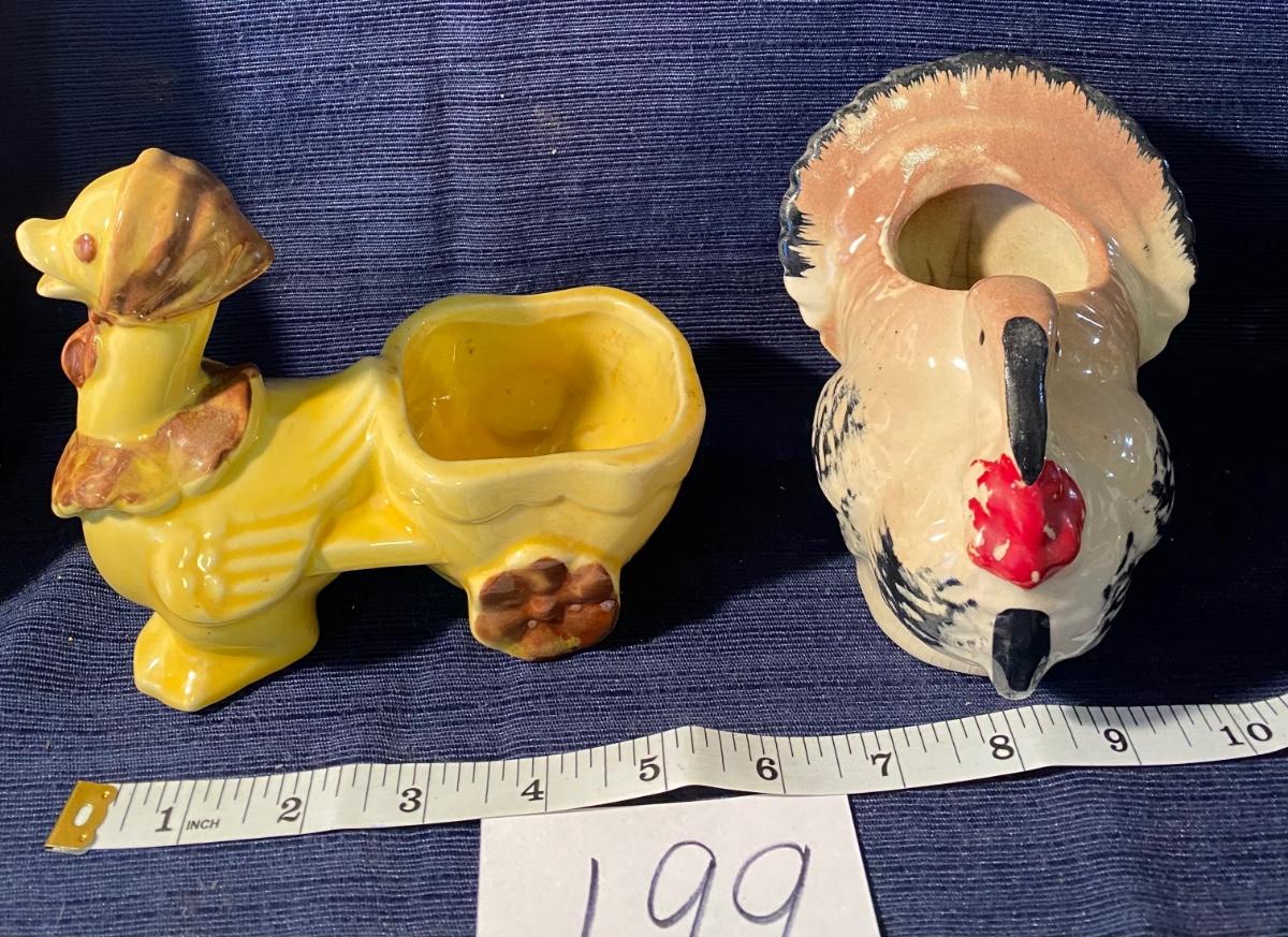 Vintage Shawnee Duck Planter and Ceramic Turkey Planter