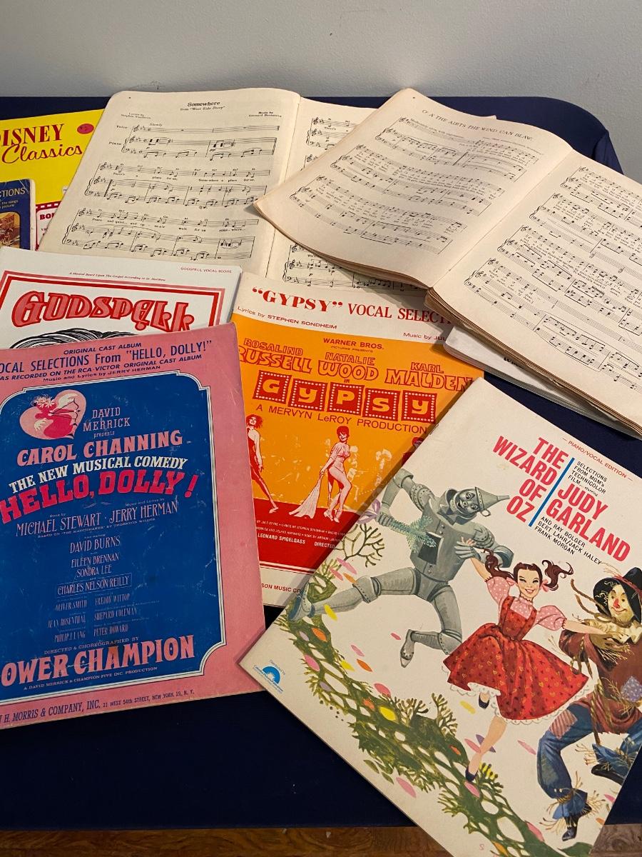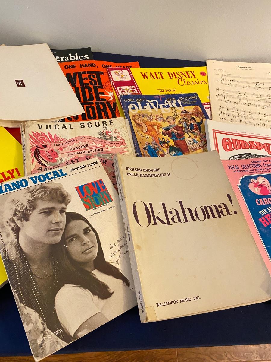 Vintage Sheet Music Includes Oklahoma, Love Story, Hello Dolly, Oliver, and More As Pictured