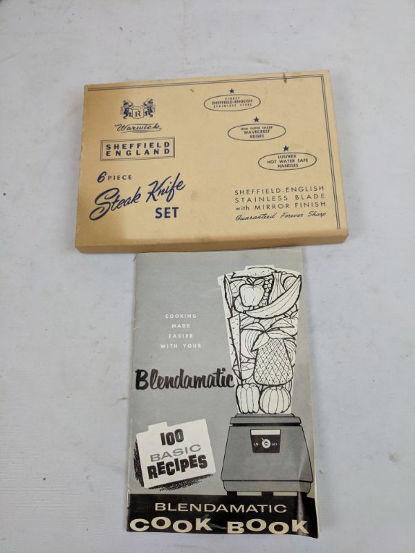 Vintage Sheffield England 6 Piece Steak Knife Set & Blendomatic 100 Basic Recipes