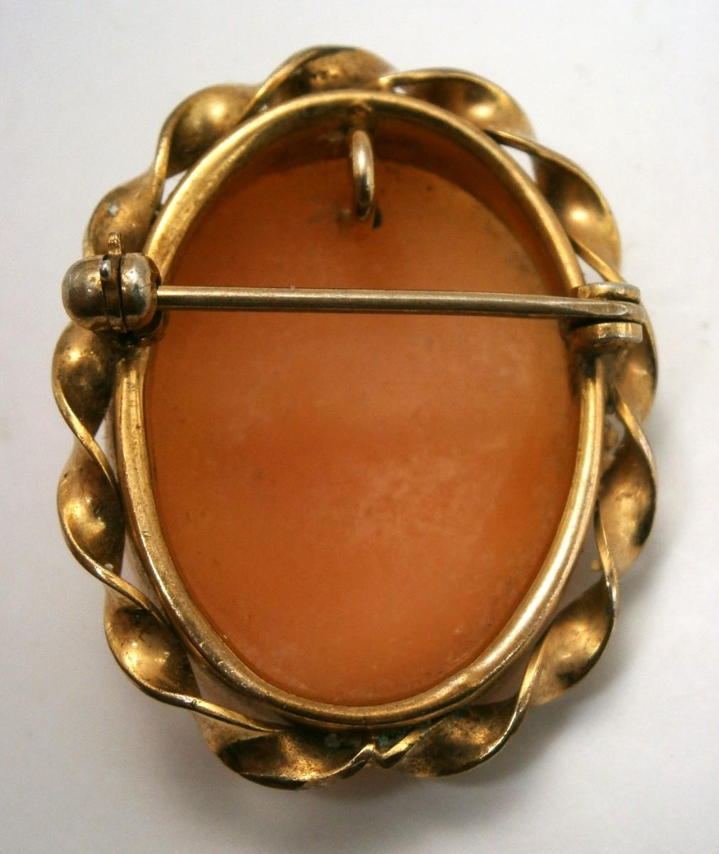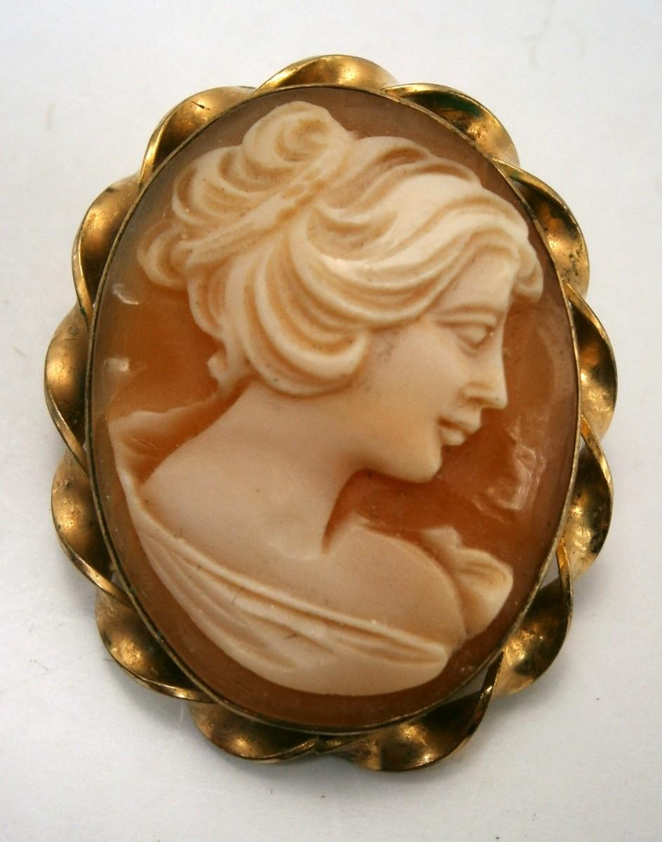 Vintage Shell Cameo Pin Brooch in Gold Filled Frame, 1 1/8 in. tall.