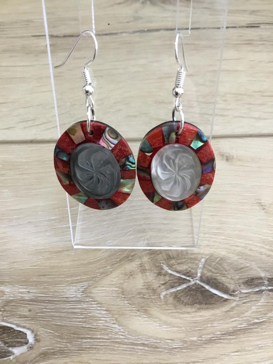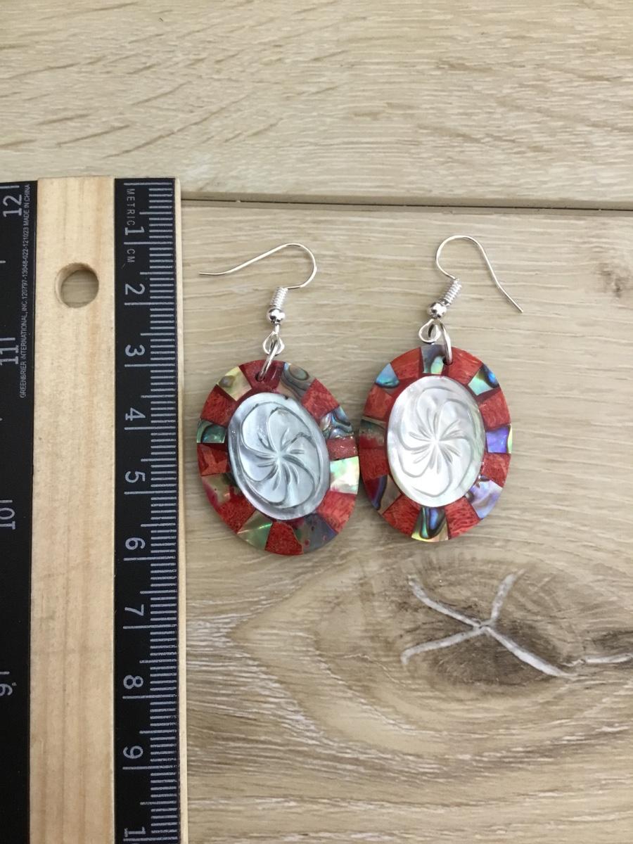 Vintage shell in lay Silver-tone, mother of pearl dangling earrings