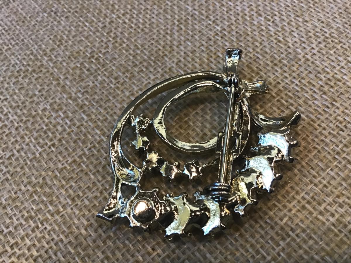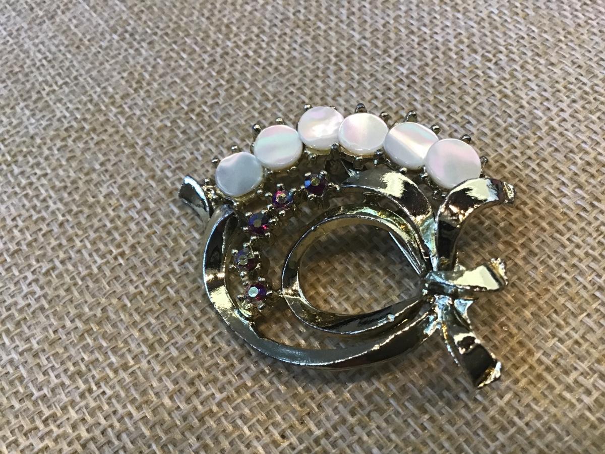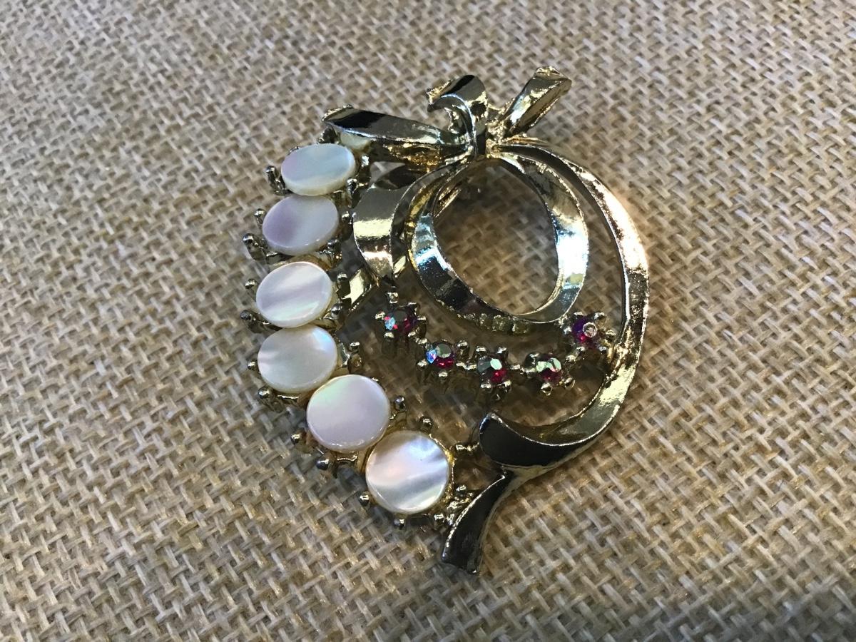 Vintage Shell Jewelry Demi Perure AB Rhinestones Pin Brooch