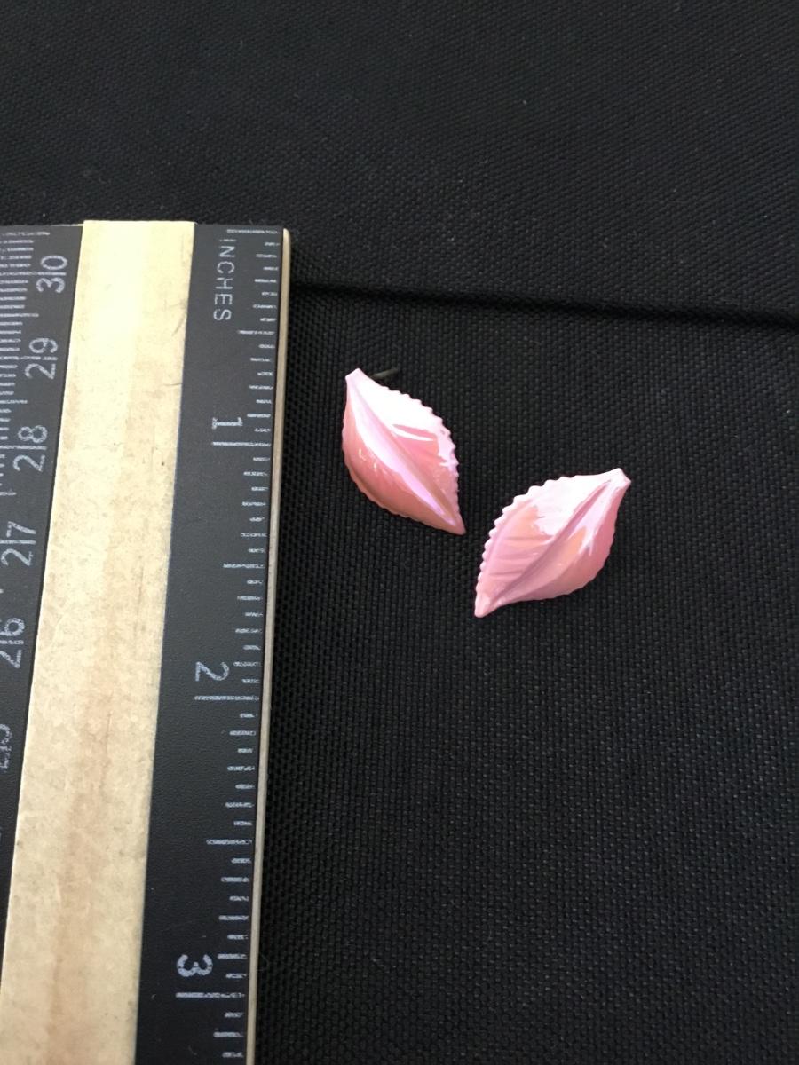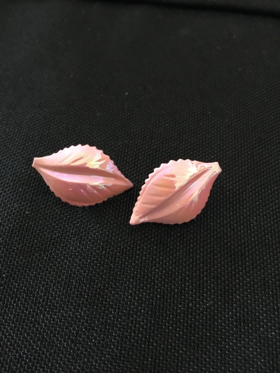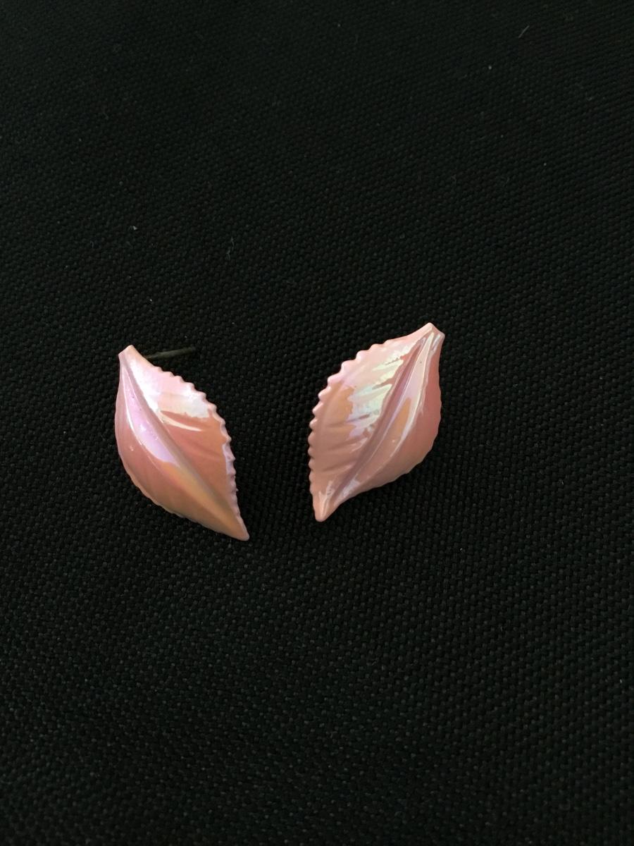 Vintage shimmery, pink leaf stud earrings