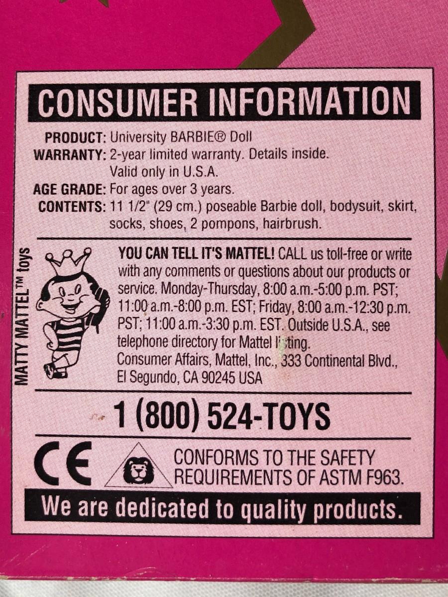 Vintage "1996 Special Edition University Barbie - Florida" - Shipping Available