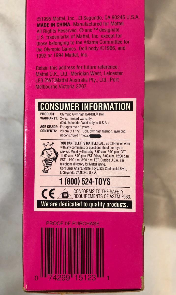 Vintage "#15123 Olympic Gymnast Barbie 1996 Atlanta" - Shipping Available