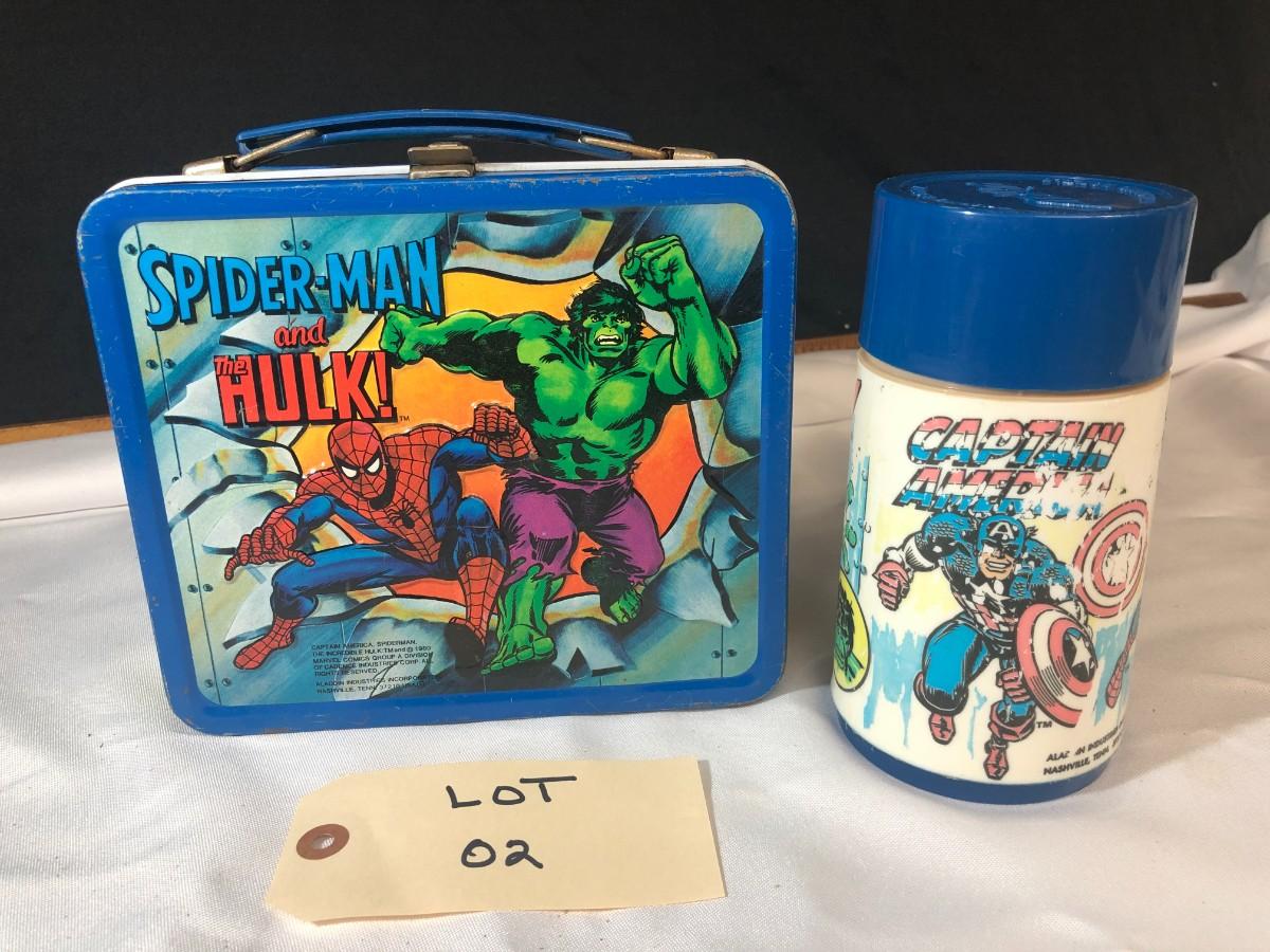 Vintage "Captain America Spiderman Hulk Lunch box with Thermos" - Shipping Available
