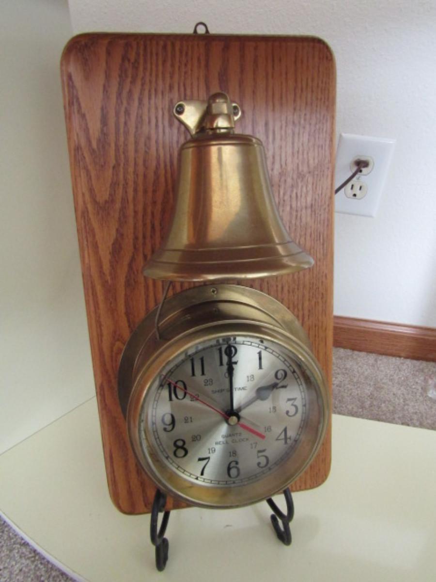 Vintage Ship's Time Quartz Bell Clock With Separate Brass Bell