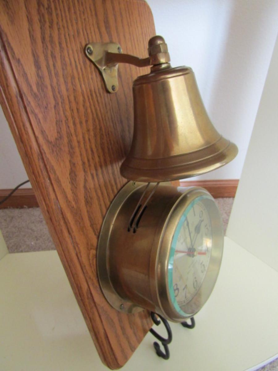 Vintage Ship's Time Quartz Bell Clock With Separate Brass Bell. Not sure if clock chimes.
