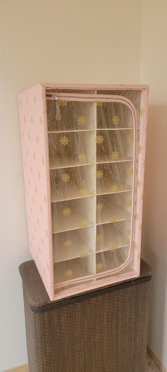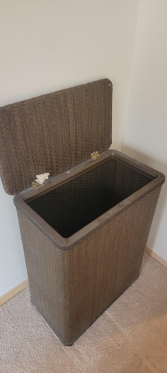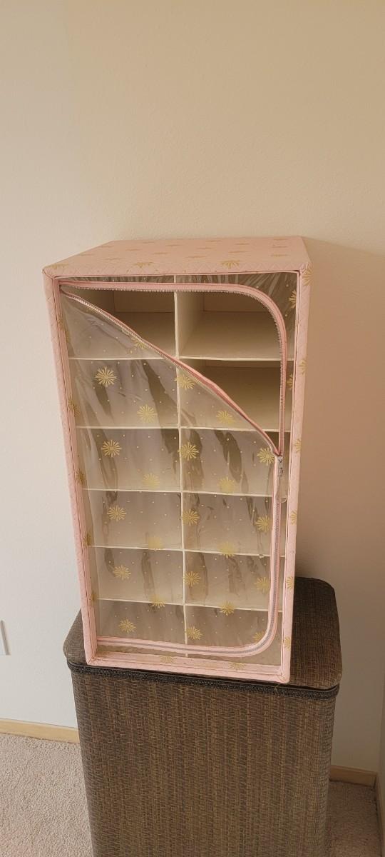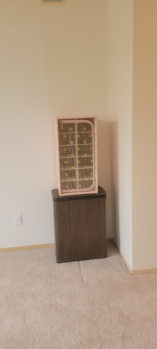 Cool pink vintage shoe caddy! "Model Home" 26" x 14" x 14" Wicker style hamper.