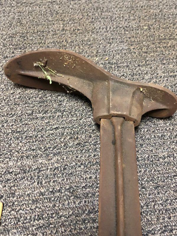 Vintage shoe cobblers anvil stand with foot. Heavy cast iron. Great rustic decor.
