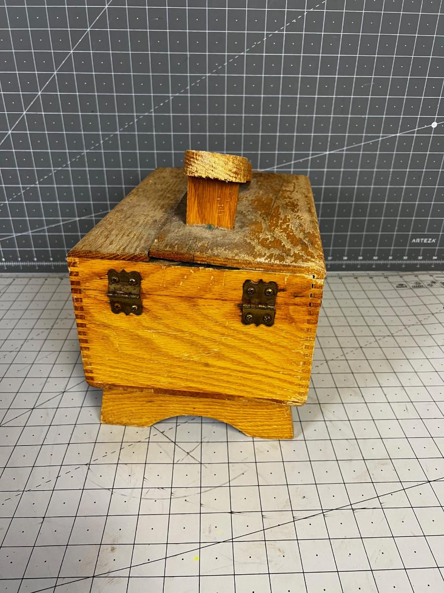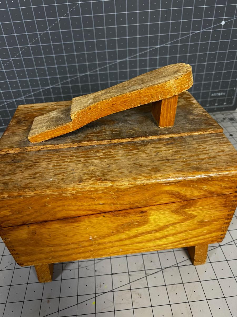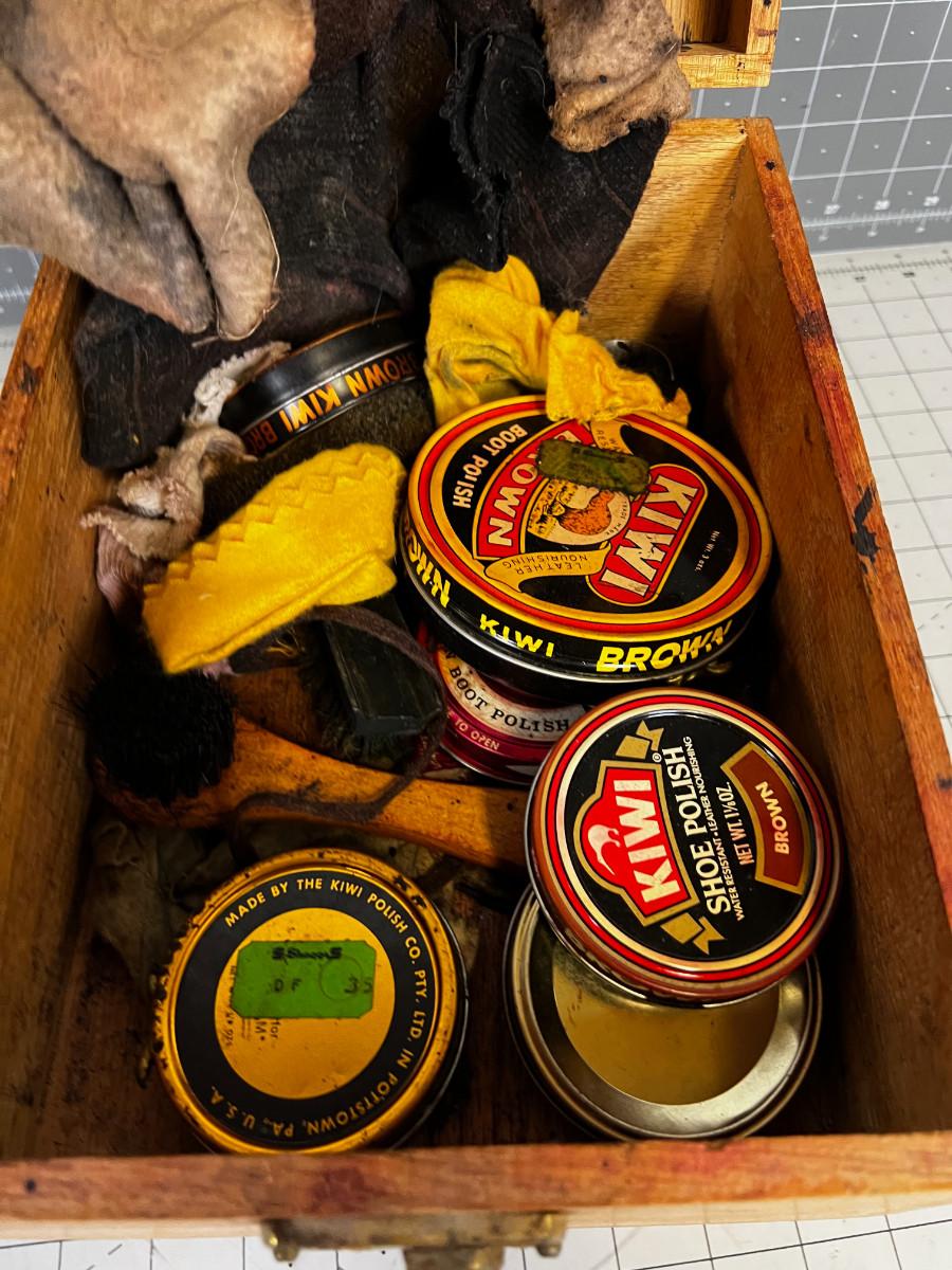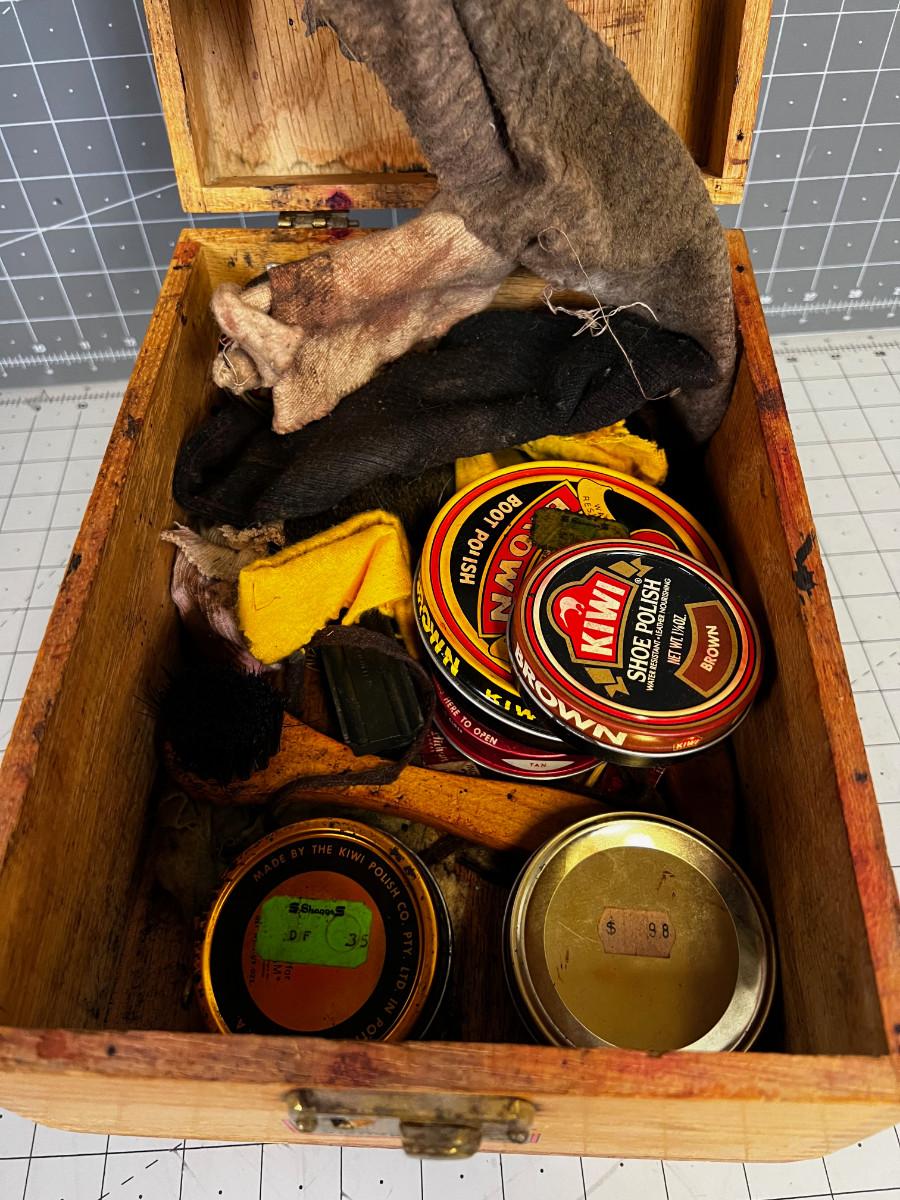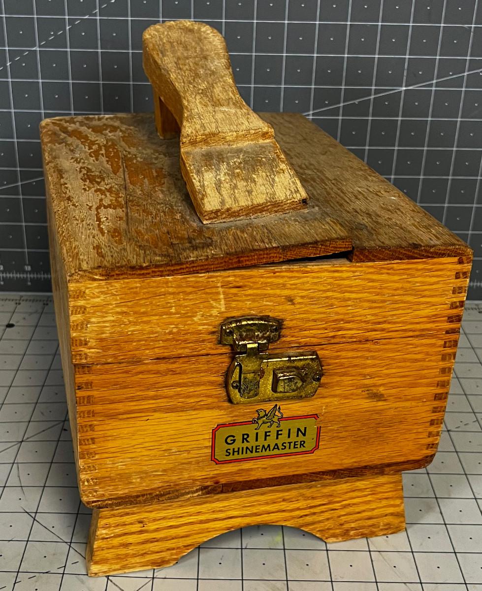 Used Has brushes and polishes inside. Shoes wear. Needs a repair on top.