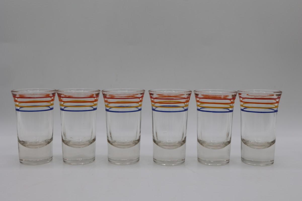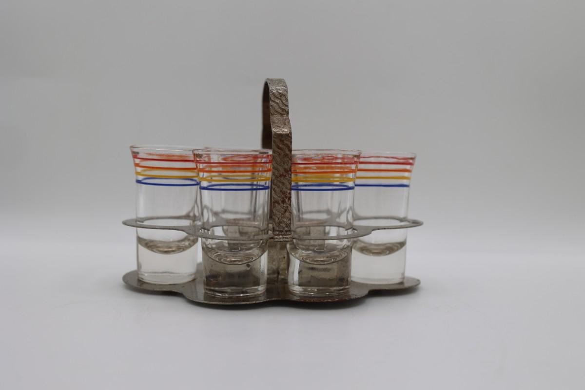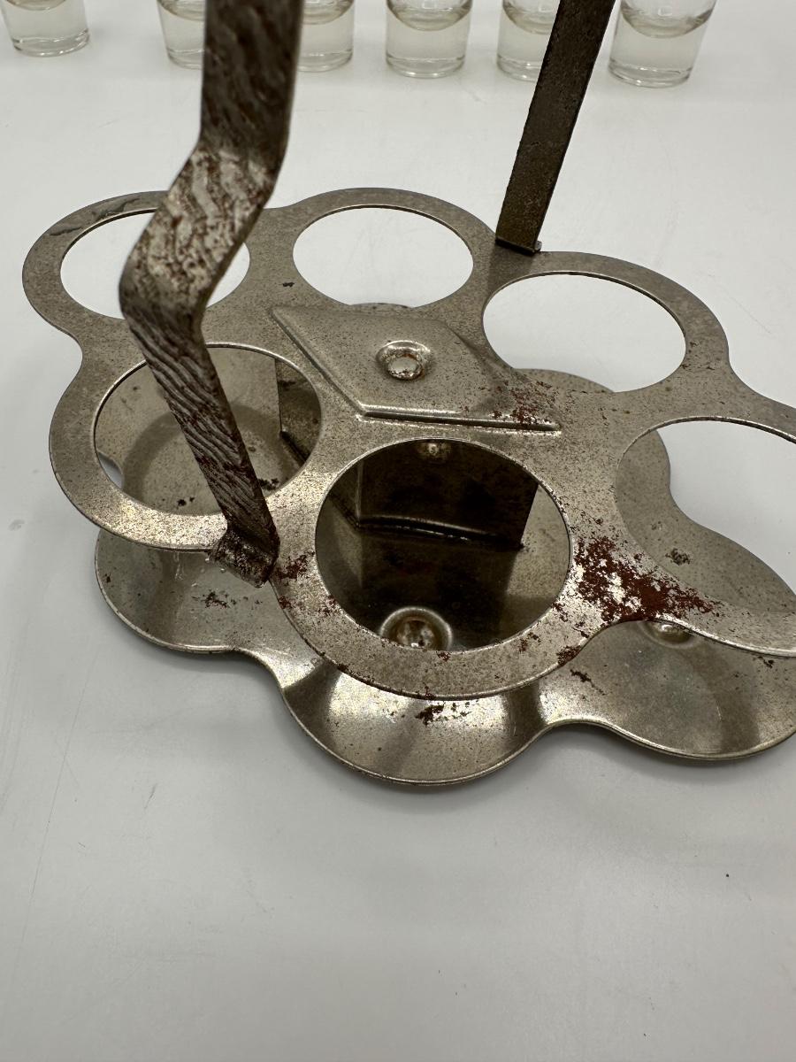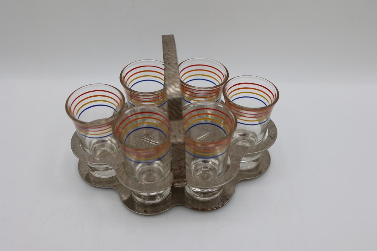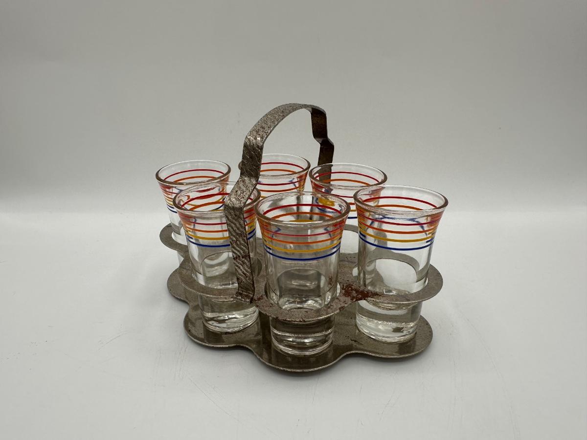 Vintage Shot Glass Set - Set of 6 with Metal Chrome Caddy