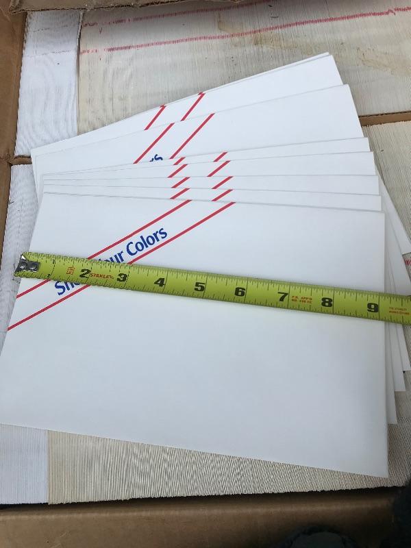 This lot includes at least 2500 of these 6 in. x 9 in. envelopes. These could make great, vintage stationary! Two different styles included.