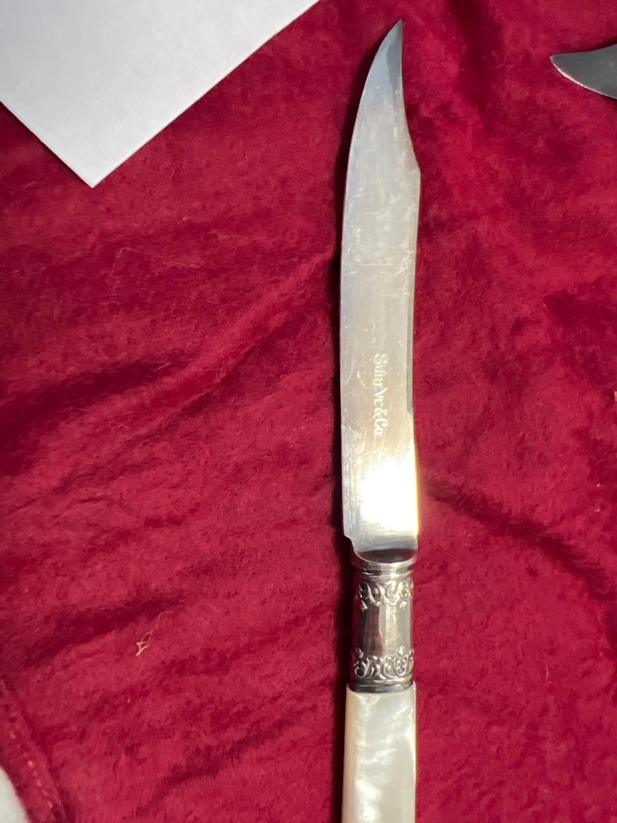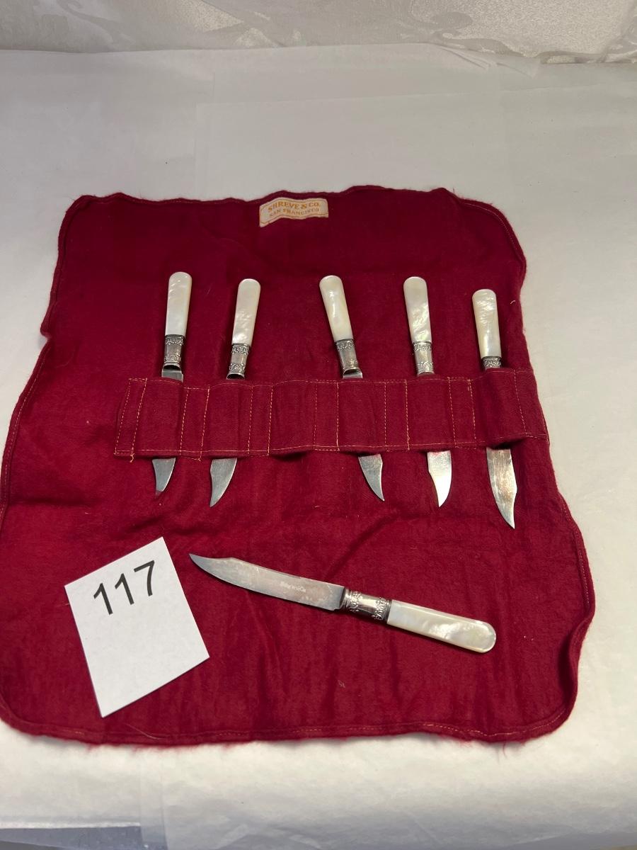 6 Vintage Shreve & Co Sterling Bolster Fruit Knives w/ Mother of Pearl Handles