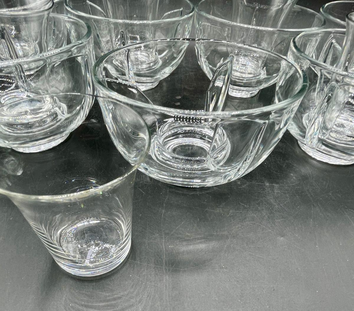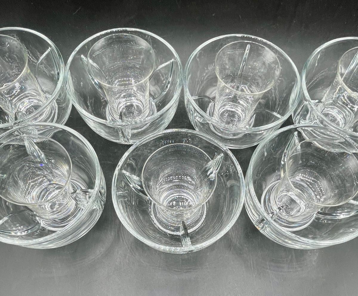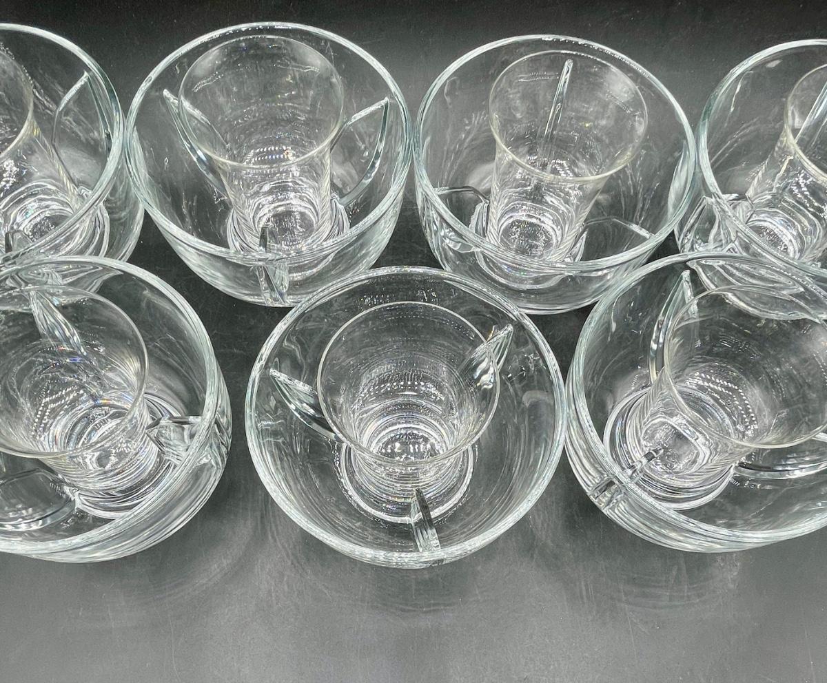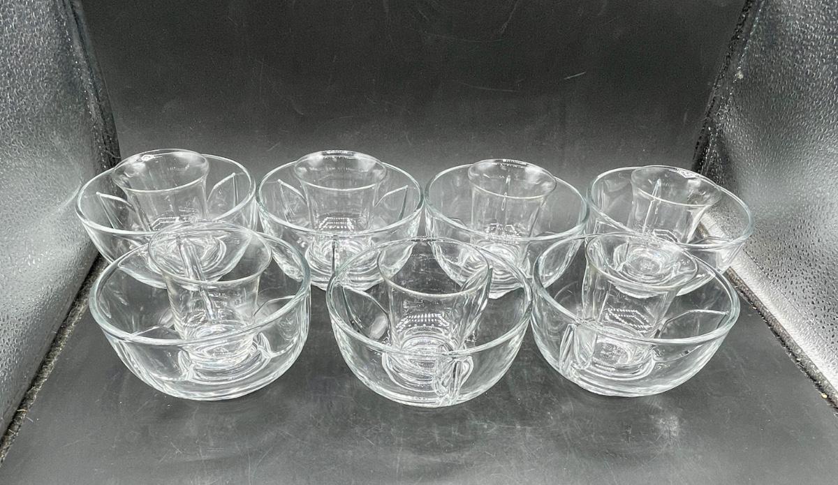Vintage Shrimp Cocktail Bowls clear glass with removable salt insert glass