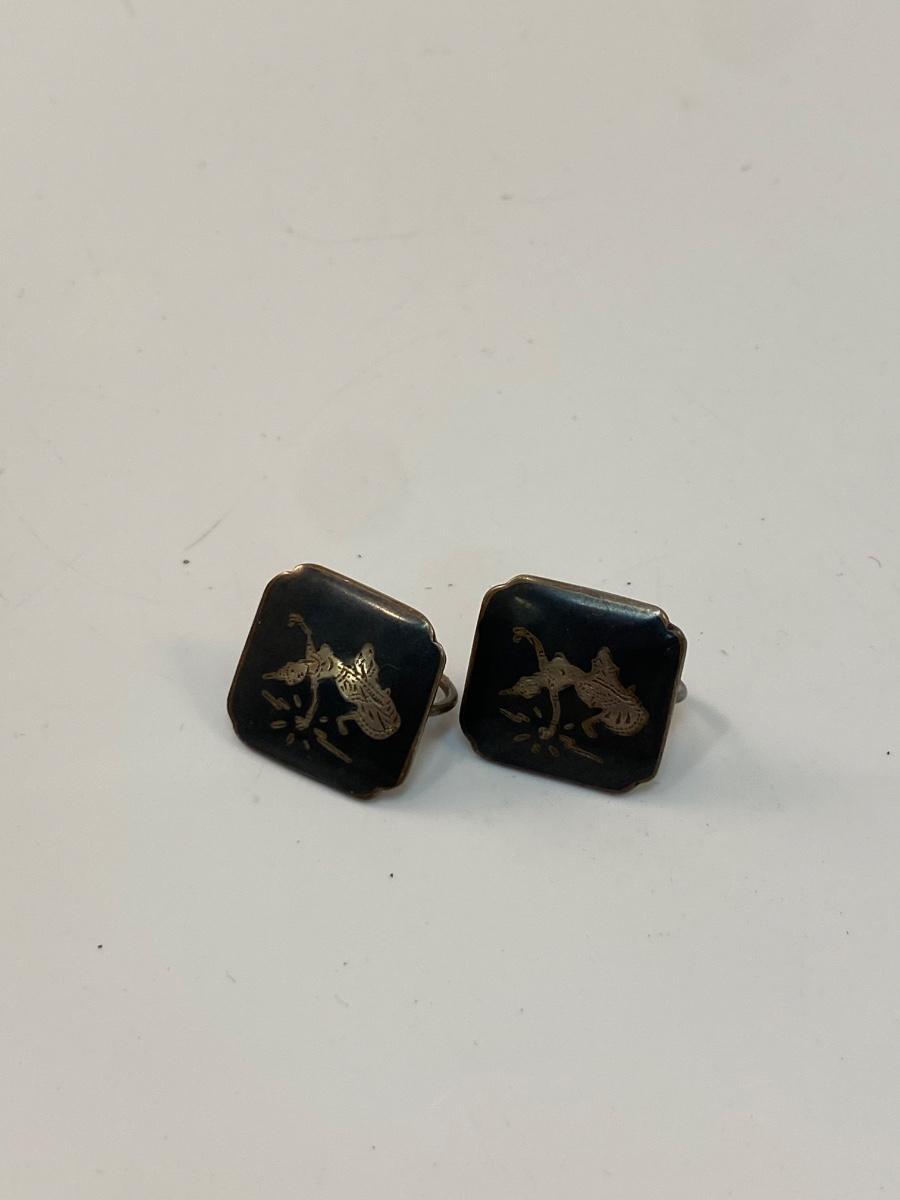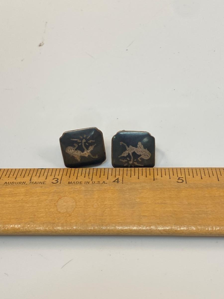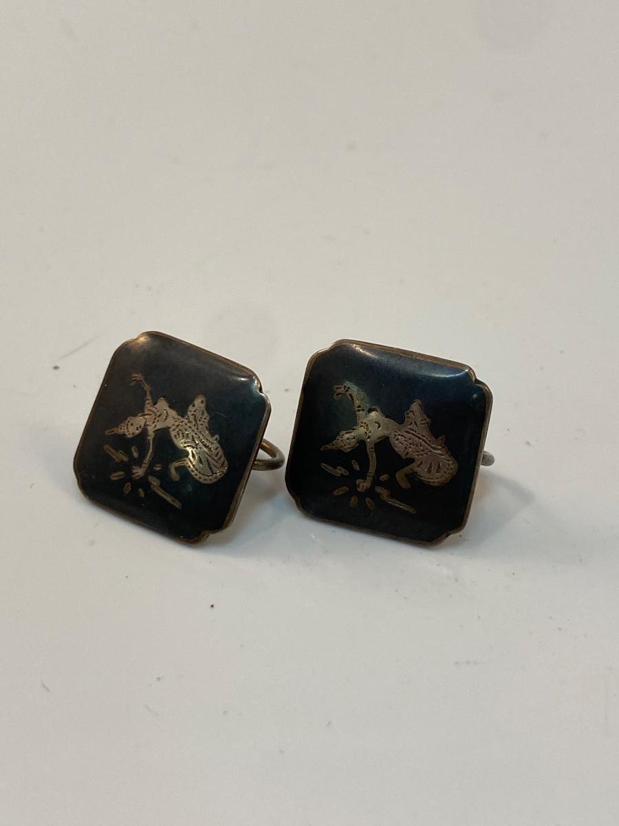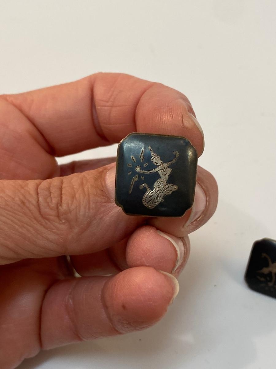 Vintage Siam Silver Etched Thai Dancer Screw Back Style Earrings