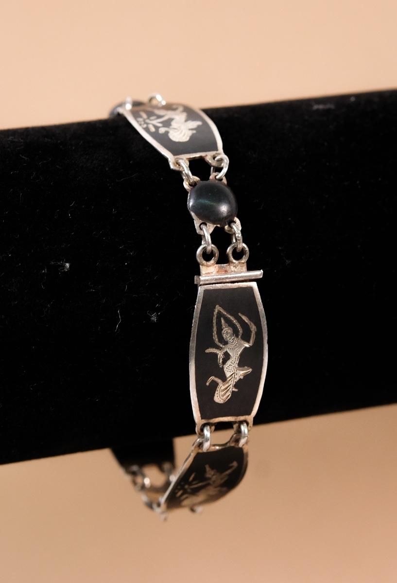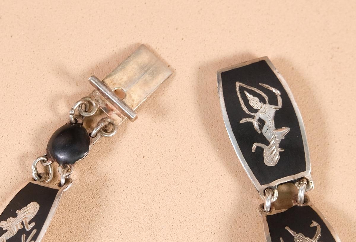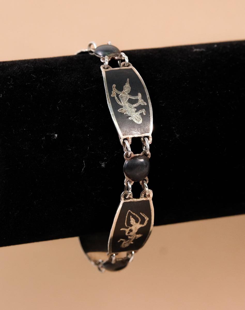 Vintage Siam Sterling Black Enameled Goddess Link Bracelet