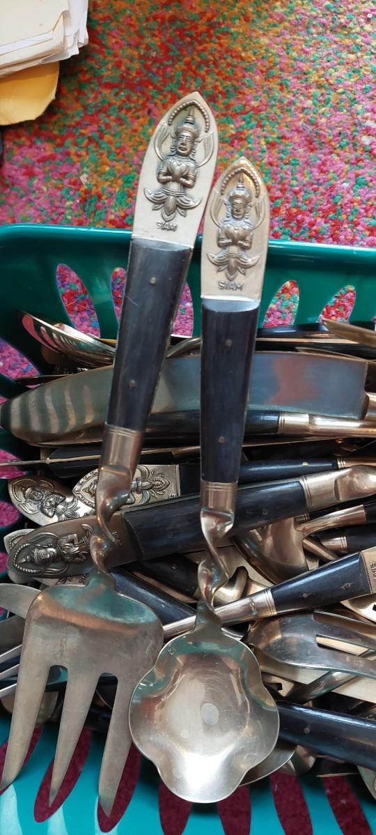 Vintage Siam Thailand Rosewood & Bronze Flatware Set