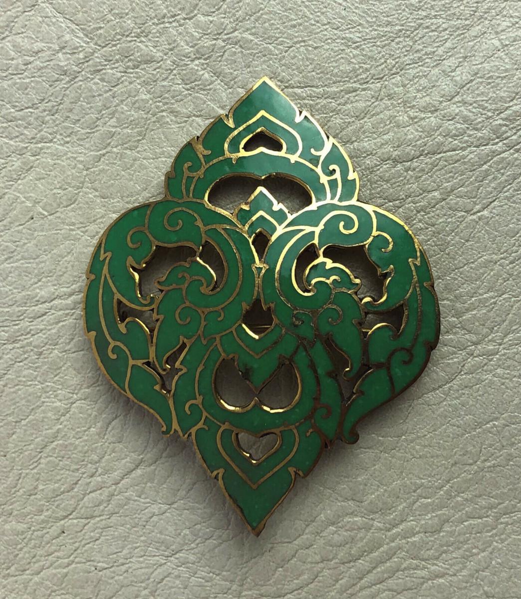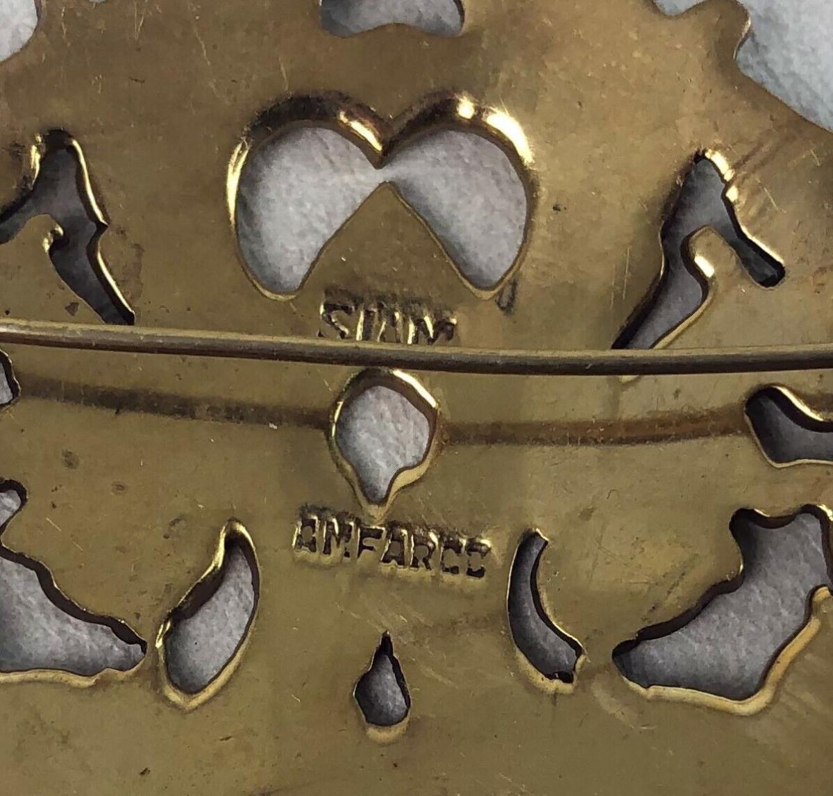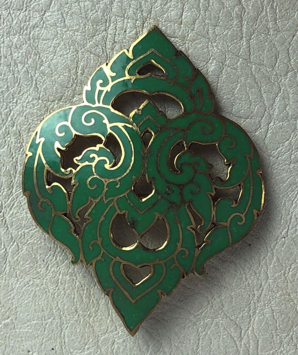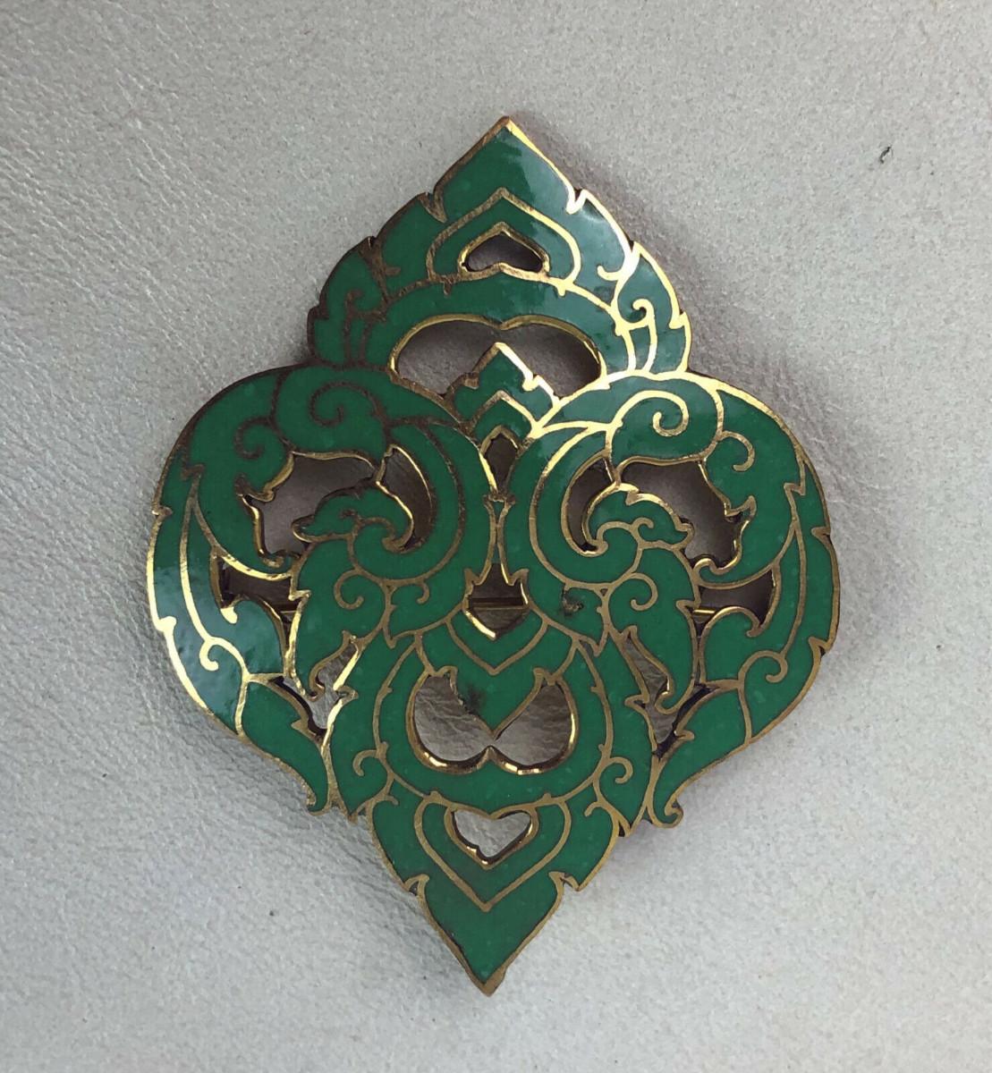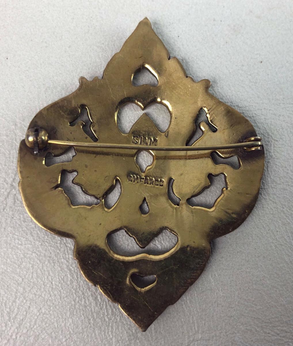 Marked SIAM..pre-Thailand...In excellent condition on this green enamel on goldtone pin or brooch...by AMFARCO...2 1/4" x 1 3/4"...No loss or wear on the enamel...Little sign of use..Estate find.