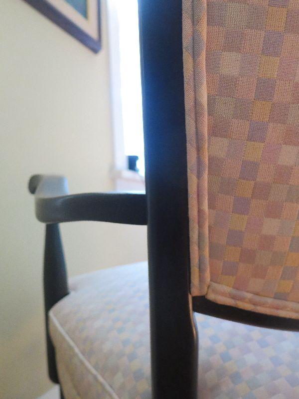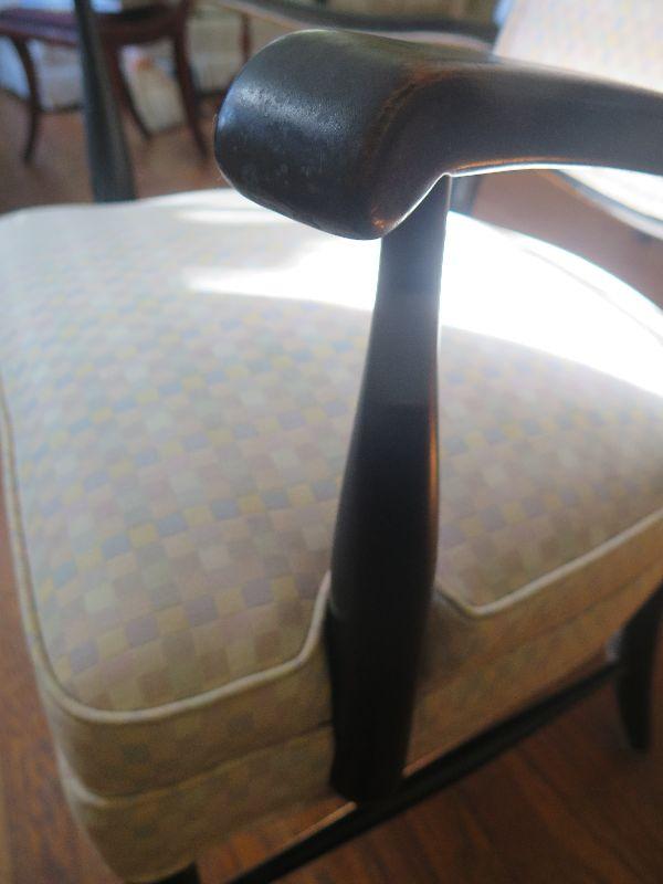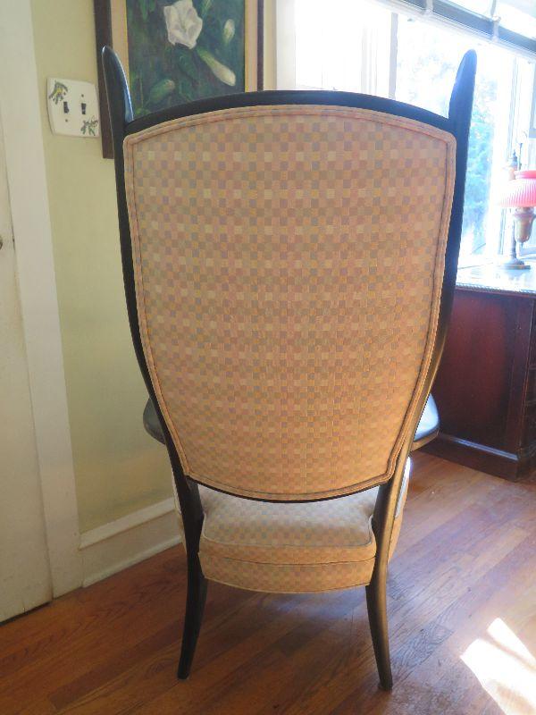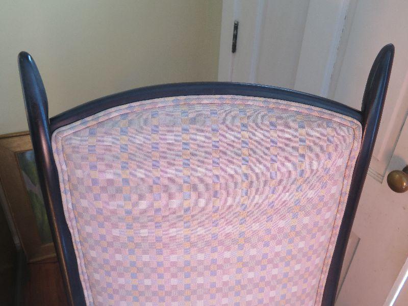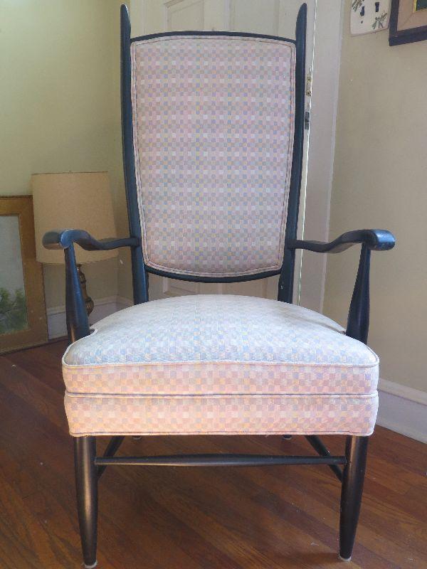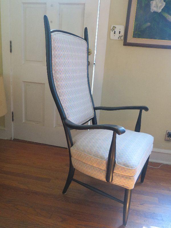 Mid Century Modern chair that has been reupholstered in beautiful fabric. 24x24x50. Please read Terms and Conditions before placing a bid. Pick up is Saturday, November 30 from 9am to 3 pm in Bridgeton, NJ. All sales are final. All sales are as is, where is. Please review all photos. Any props included in photos are not included in listing. All measurements are approximate.