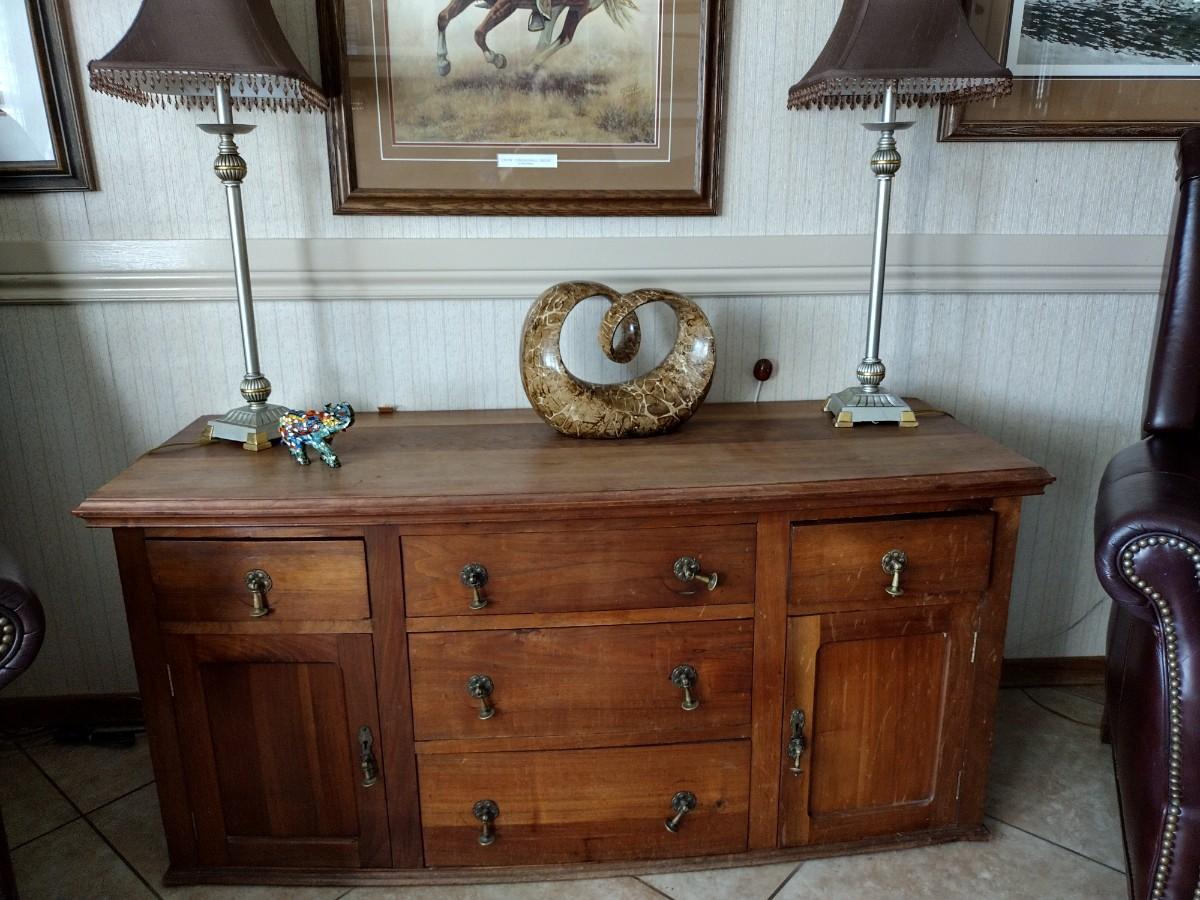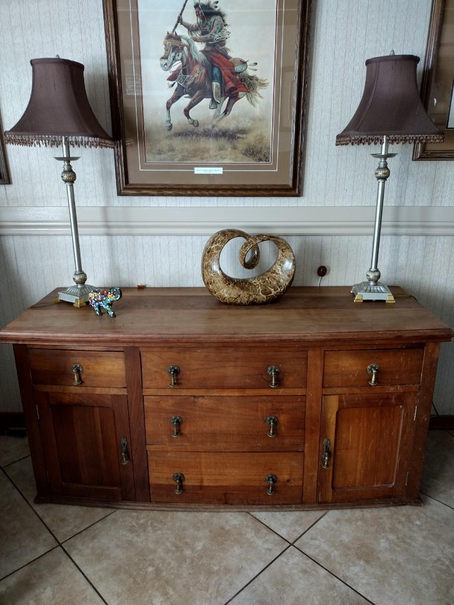 beautiful vintage solid wood sideboard. Has some scratches but can be easily fixed. Items on top not included.
