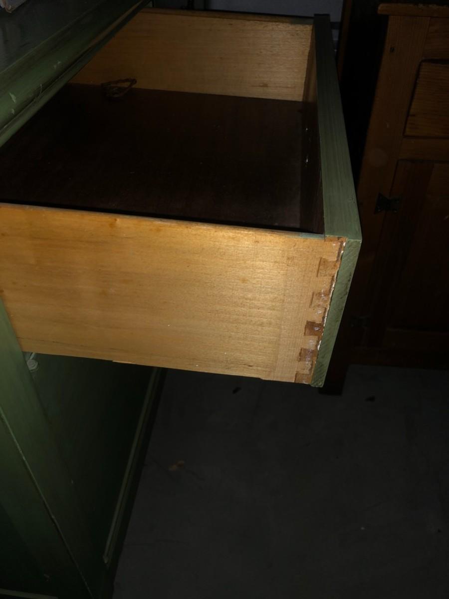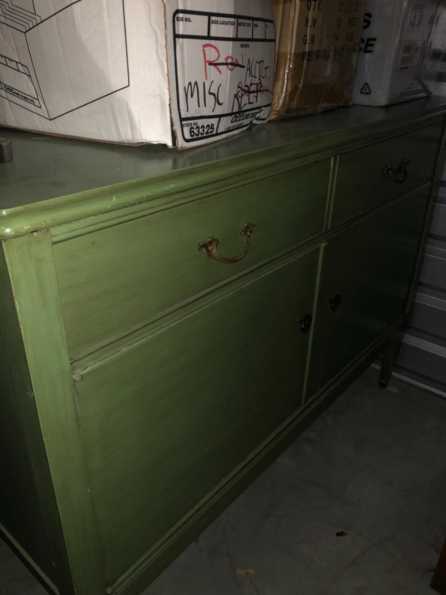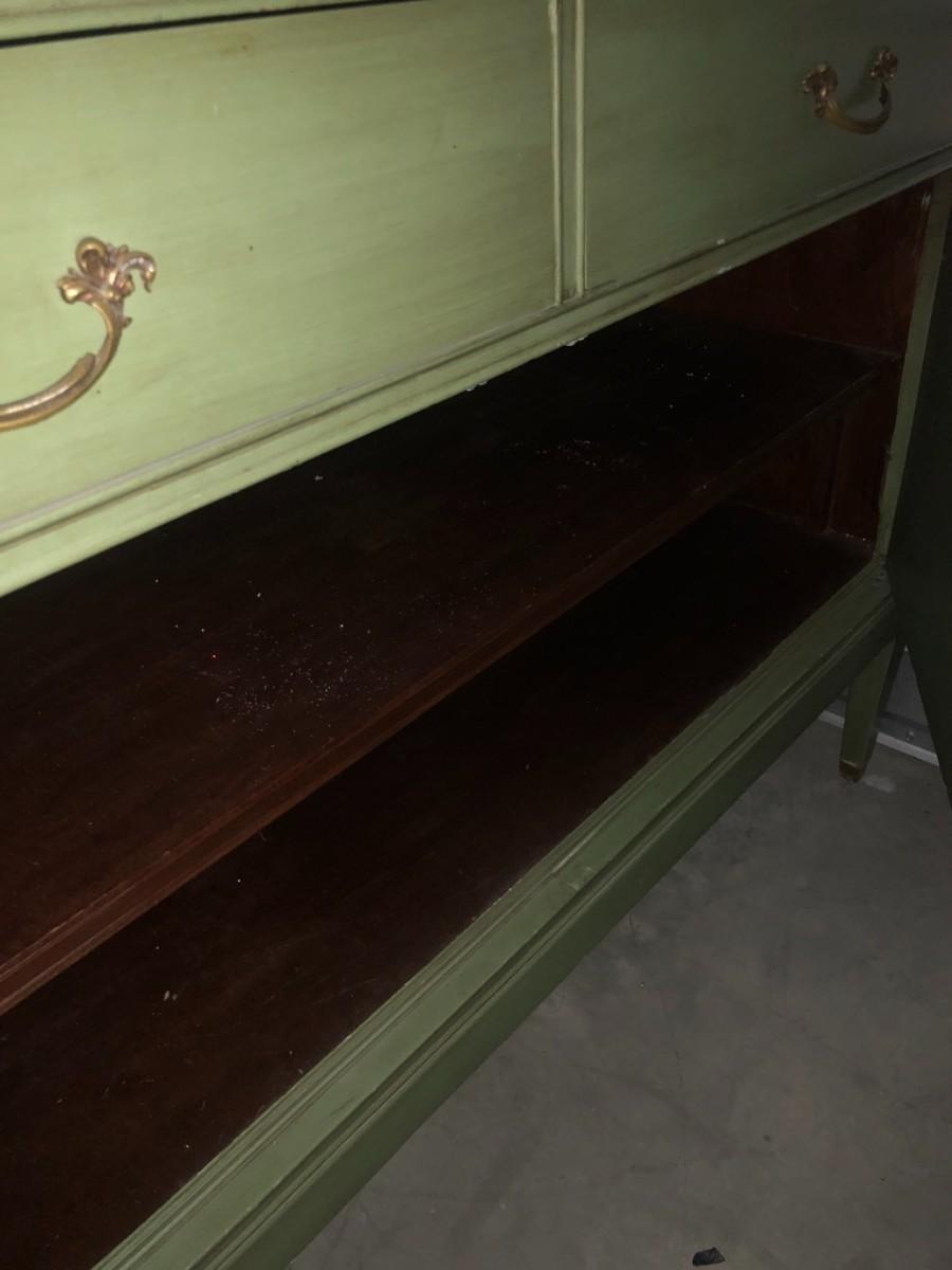 Painted sideboard/dresser. 2 top drawers. Cabinet bottom with 1 shelf. 47" x 20.5" x 35" H