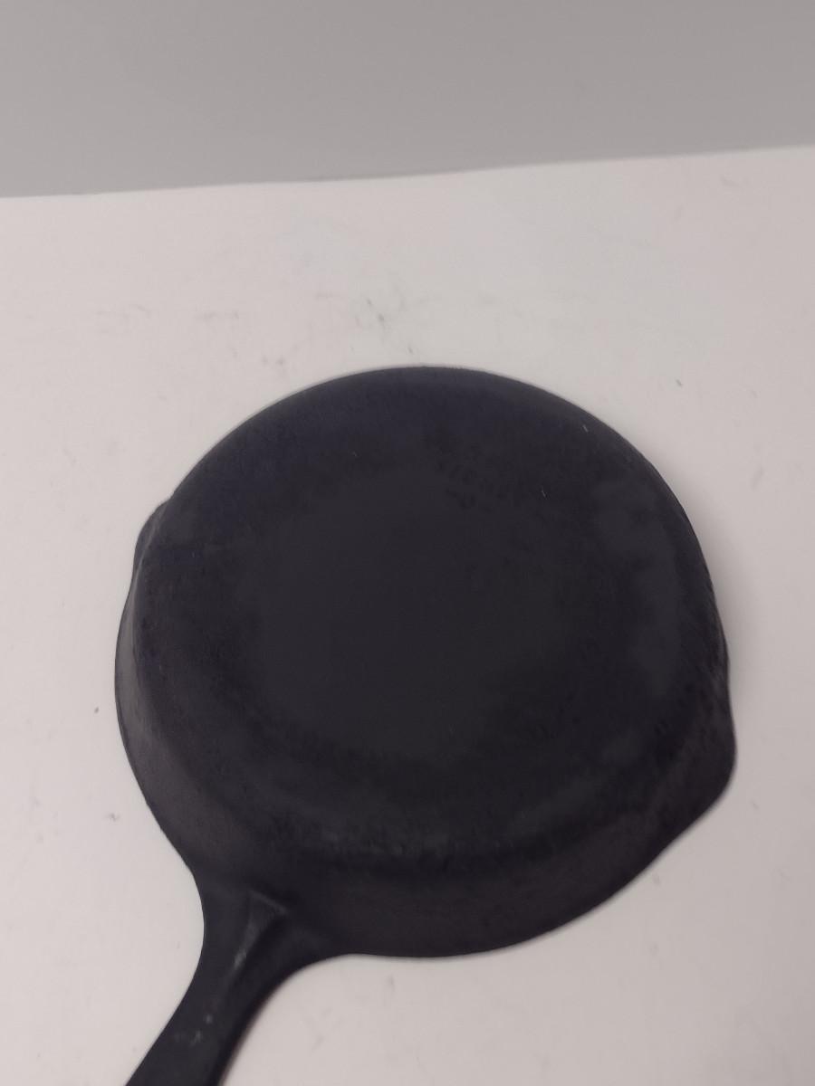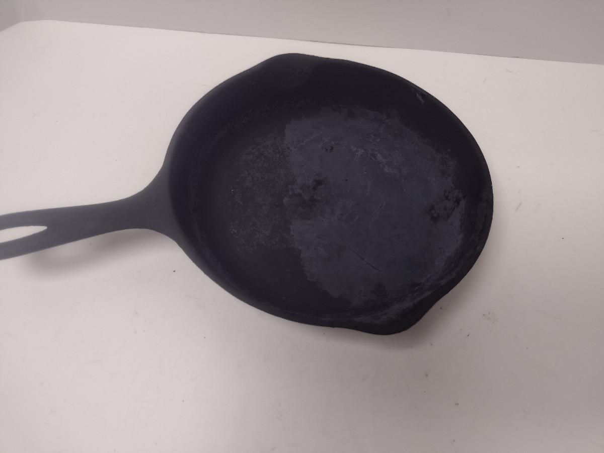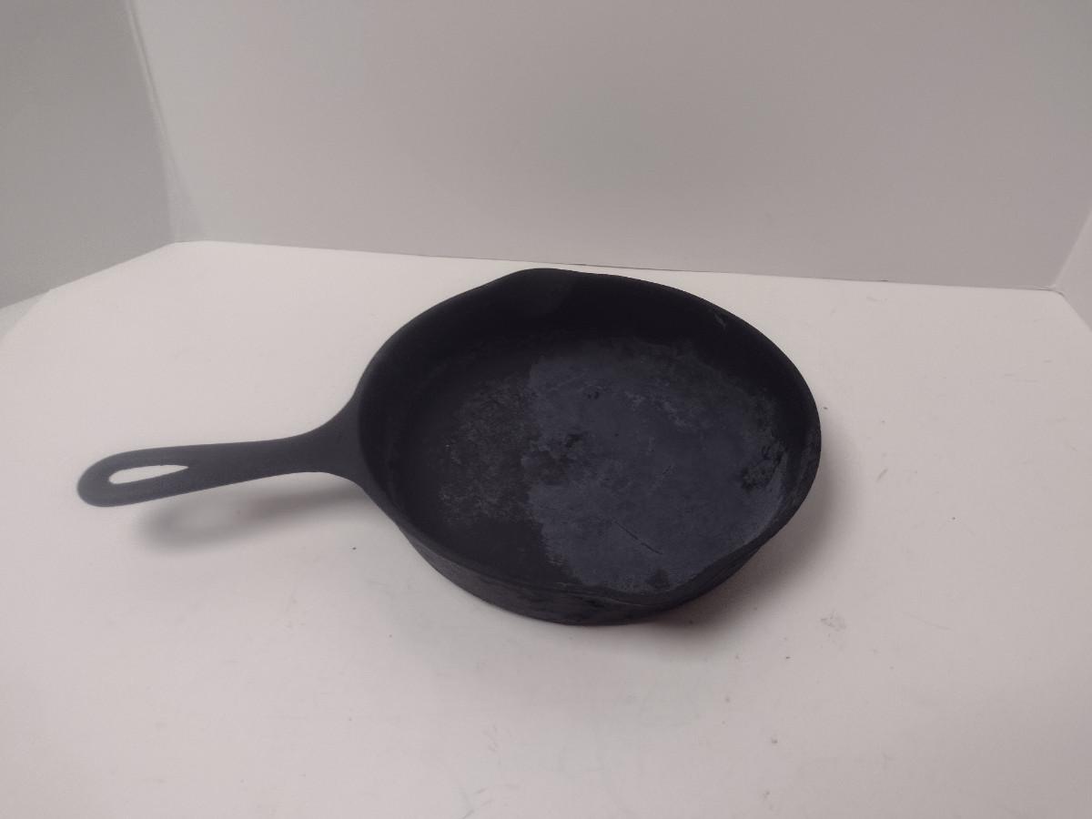Vintage Sidney Cast Iron Skillet #6. Item has dull appearance and bumpy residue- may need re-seasoning.
